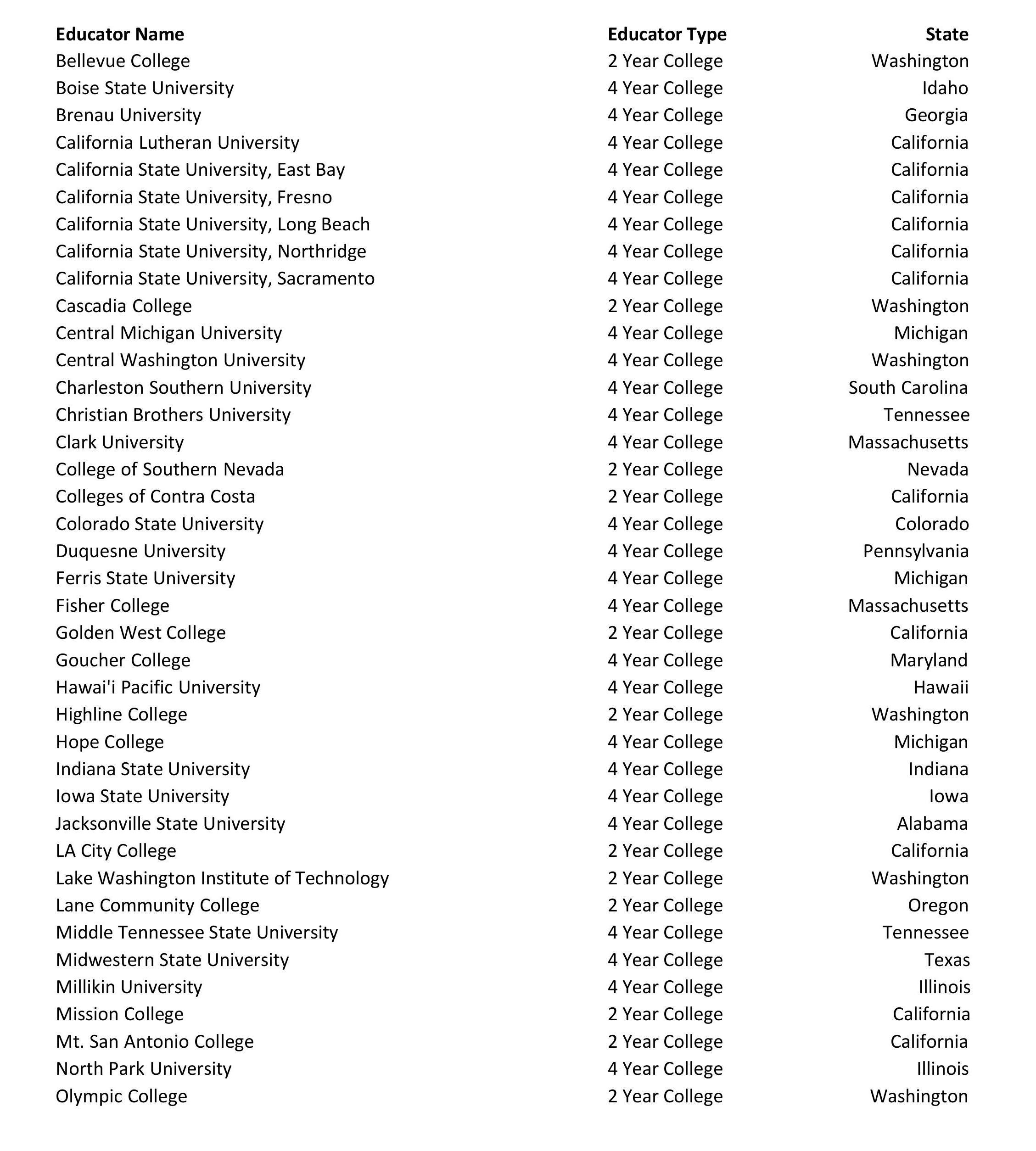 | 60 | The University of North Carolina at Greensboro | North Carolina |