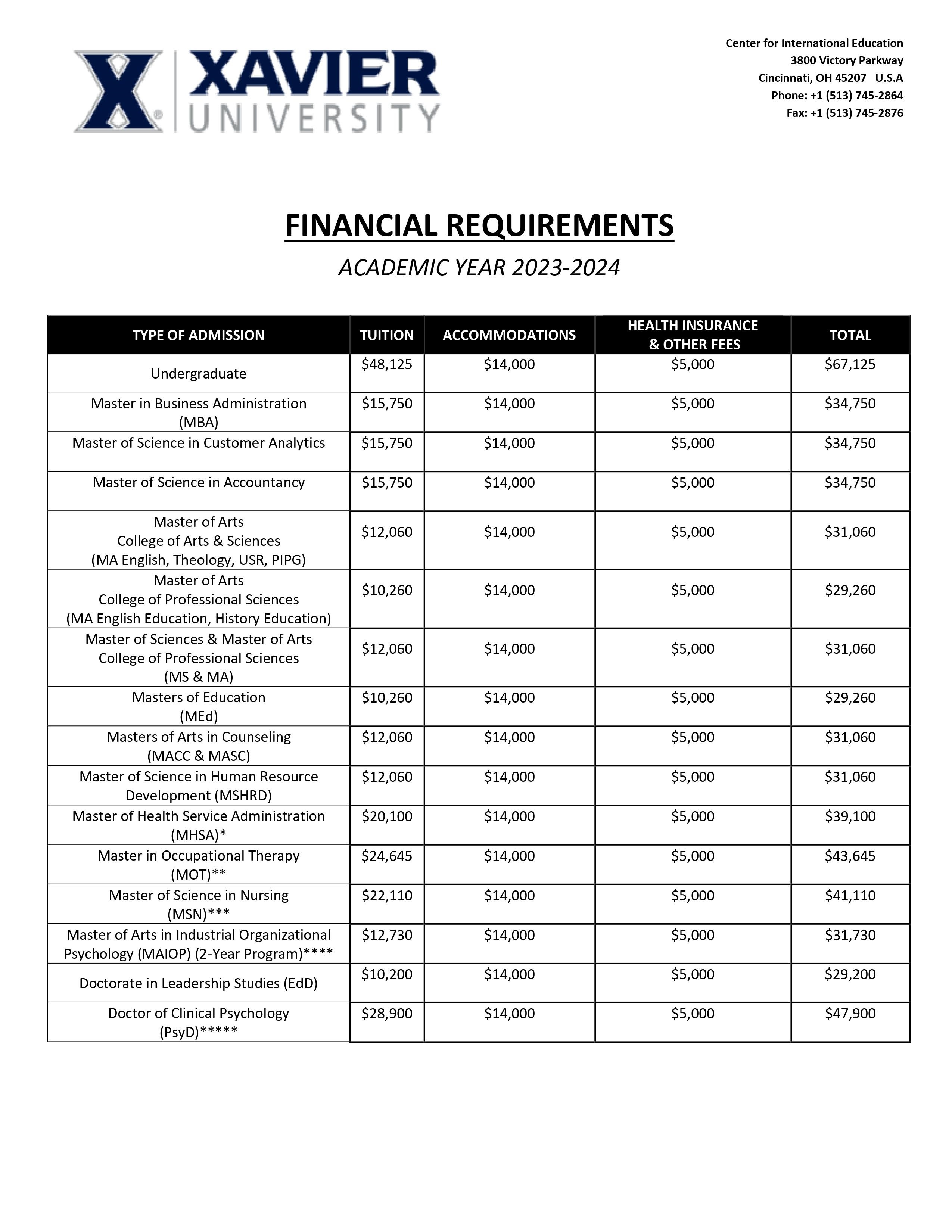 Minimum scores on English Proficiency Tests: TOEFL: iBT 79, PBT 550 Học phí:...............$48,125/năm (Kỳ Xuân, Kỳ Thu) Chi phí tổng cộng (1 năm học)..............$67,125 HỌC PHÍ & CHƯƠNG TRÌNH SAU ĐẠI HỌC |
