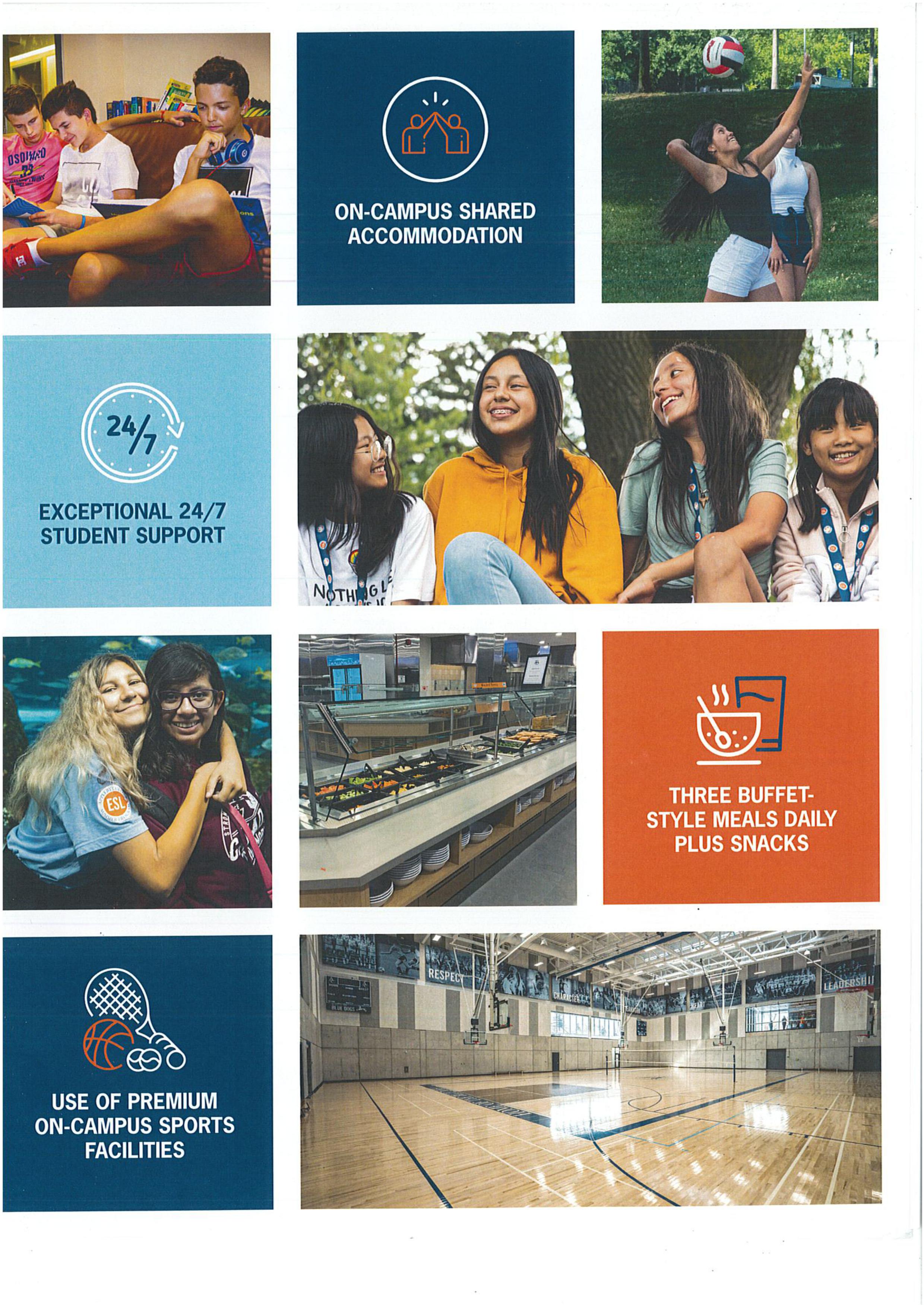 Chi phí trọn gói: $7,350 CAD bao gồm: học phí, ăn ở (3 bữa kiểu buffet/ngày và ăn vặt), hoạt động trong và ngoài trường, nhân viên an ninh 24/7, sử dụng các trang thiết bị thể thao, báo cáo kết quả học tập từng cá nhân & tín chỉ trung học tỉnh bang Ontario, Chăm sóc y tế và Bảo hiểm y tế trong suốt chương trình, Chi phí đi lại.