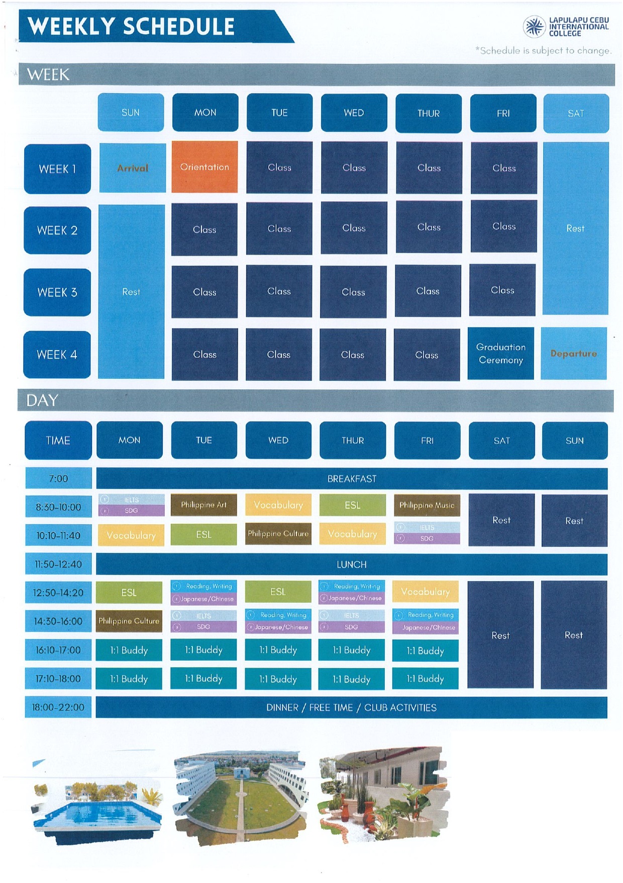 LCIC College Languge Center là Trường đại học quốc tế tại thành phố Cebu, Philipinnes, tất cả các giảng viên trong trường đều có bằng thạc sĩ trở lên, nhà Trường giảng dạy tiếng Anh thông qua các chương trình khác nhau. Bằng cách trình bày các phương pháp học tập, sinh viên có thể tích lũy phương pháp tiếng Anh cần thiết cho việc đi làm trước khi tốt nghiệp.