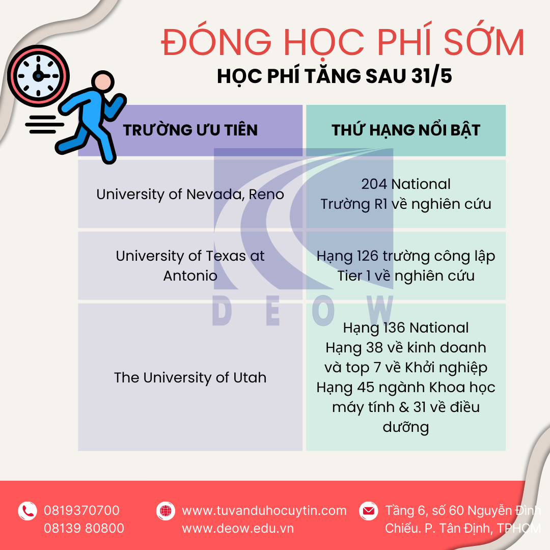 • Tiết kiệm 3-5% học phí bằng cách thanh toán đầy đủ trước ngày 31 tháng 5 năm 2026 và tránh các đợt tăng học phí và lệ phí sắp tới.