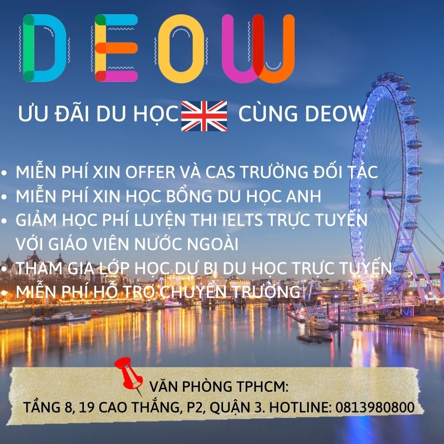 Du học DEOW Vietnam rất vui chia sẻ đến các bạn DHS Việt Nam cơ hội du học Anh Quốc và học bổng hấp dẫn từ các trường hàng đầu!