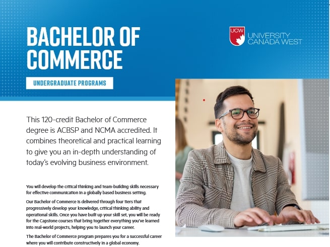 Chương trình BCom tập trung trang bị cho sinh viên hiểu biết rộng về các nguyên tắc kinh doanh, bao gồm tiếp thị, tài chính, kế toán, quản lý chuỗi cung ứng và kiến thức doanh nghiệp, tất cả các kiến thức này đều có liên quan trong ngành thương mại điện tử.