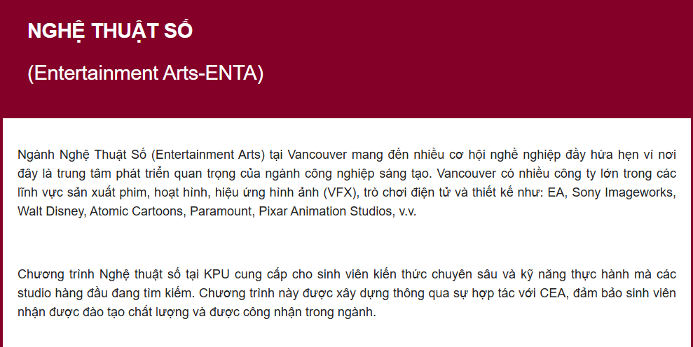 Trong bối cảnh công nghệ phát triển không ngừng, ngành Nghệ thuật số như 3D, VFX, và Game đang trở thành tâm điểm thu hút sự chú ý của giới trẻ và các nhà tuyển dụng toàn cầu. Tại Vancouver, một trong những trung tâm công nghiệp sáng tạo hàng đầu thế giới, Kwantlen Polytechnic University (KPU) nổi bật như một lựa chọn lý tưởng cho những ai đam mê và mong muốn theo đuổi sự nghiệp trong lĩnh vực này.