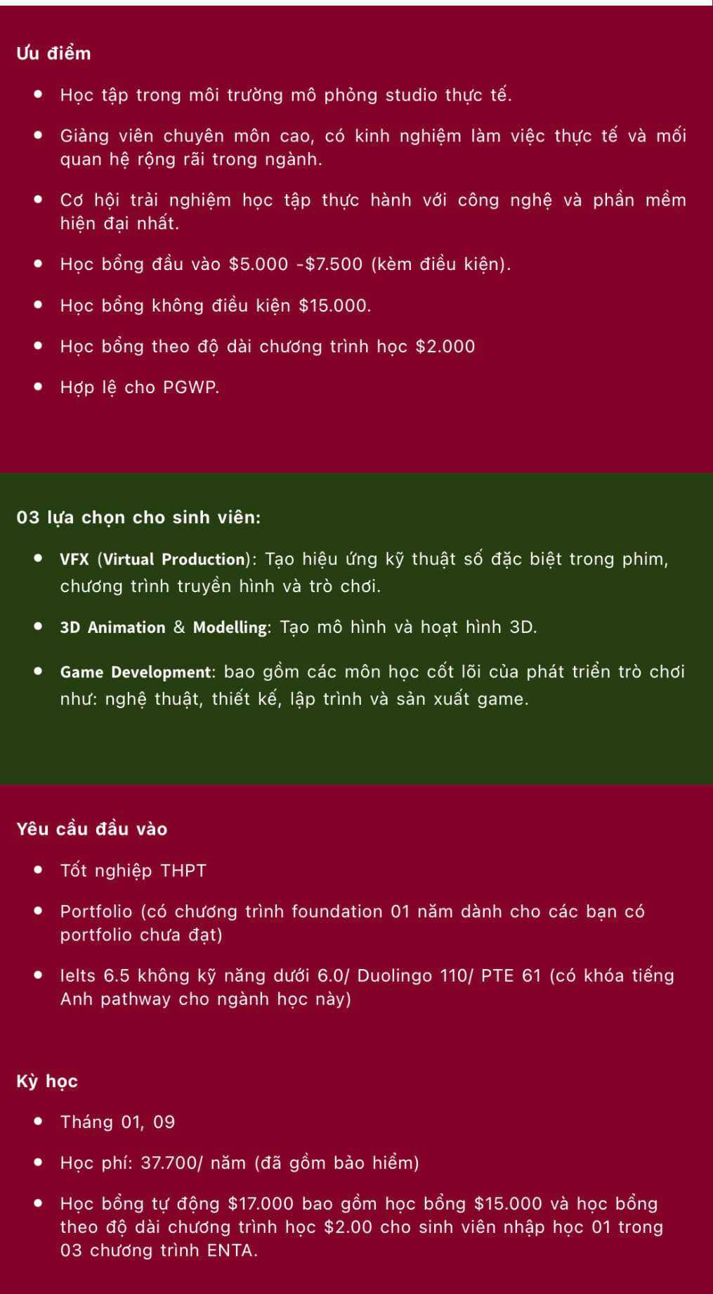 ➡️ Học bổng $15,000 không kèm điều kiện cho sinh viên nhập học các chương trình Nghệ thuật số.