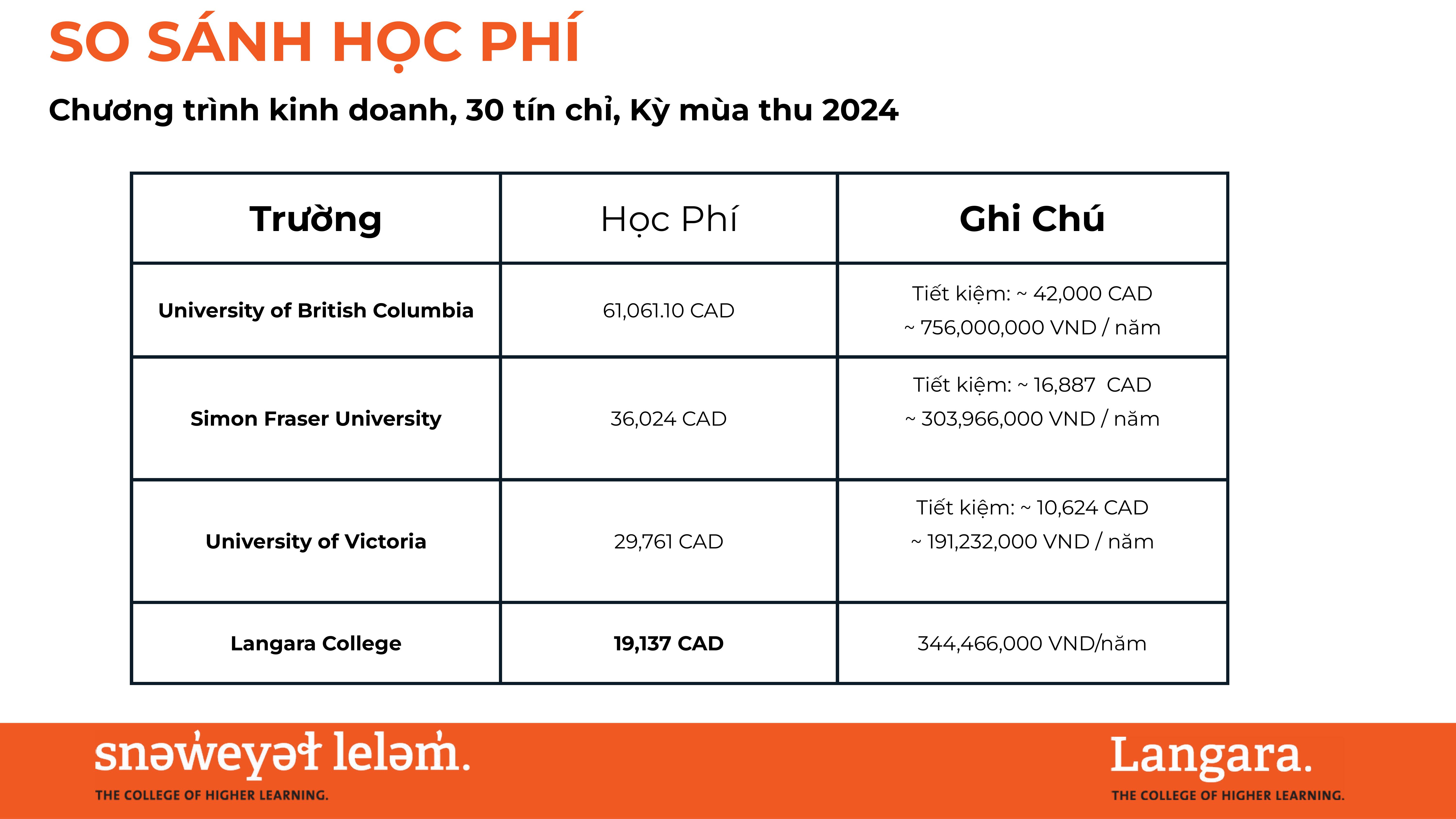 Học phí: $19,000 - $23,000 CAD/ năm