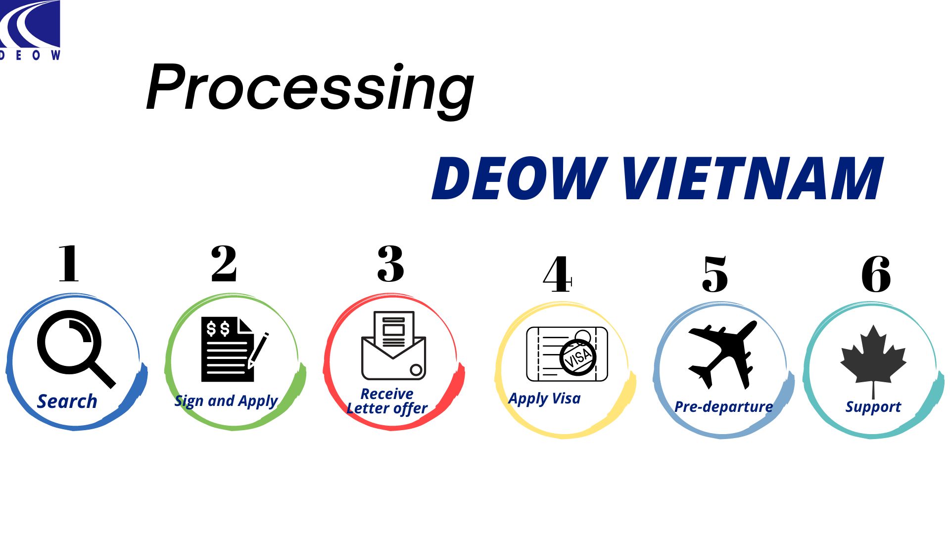 DEOW sẽ hướng dẫn các thủ tục liên quan đến việc nộp hồ sơ xin Visa, bao gồm: điền form, dịch thuật hồ sơ, hỗ trợ lên kế hoạch hướng dẫn viết và chỉnh sửa đơn tường trình và các giấy tờ theo yêu cầu của lãnh sự quán Canada.
