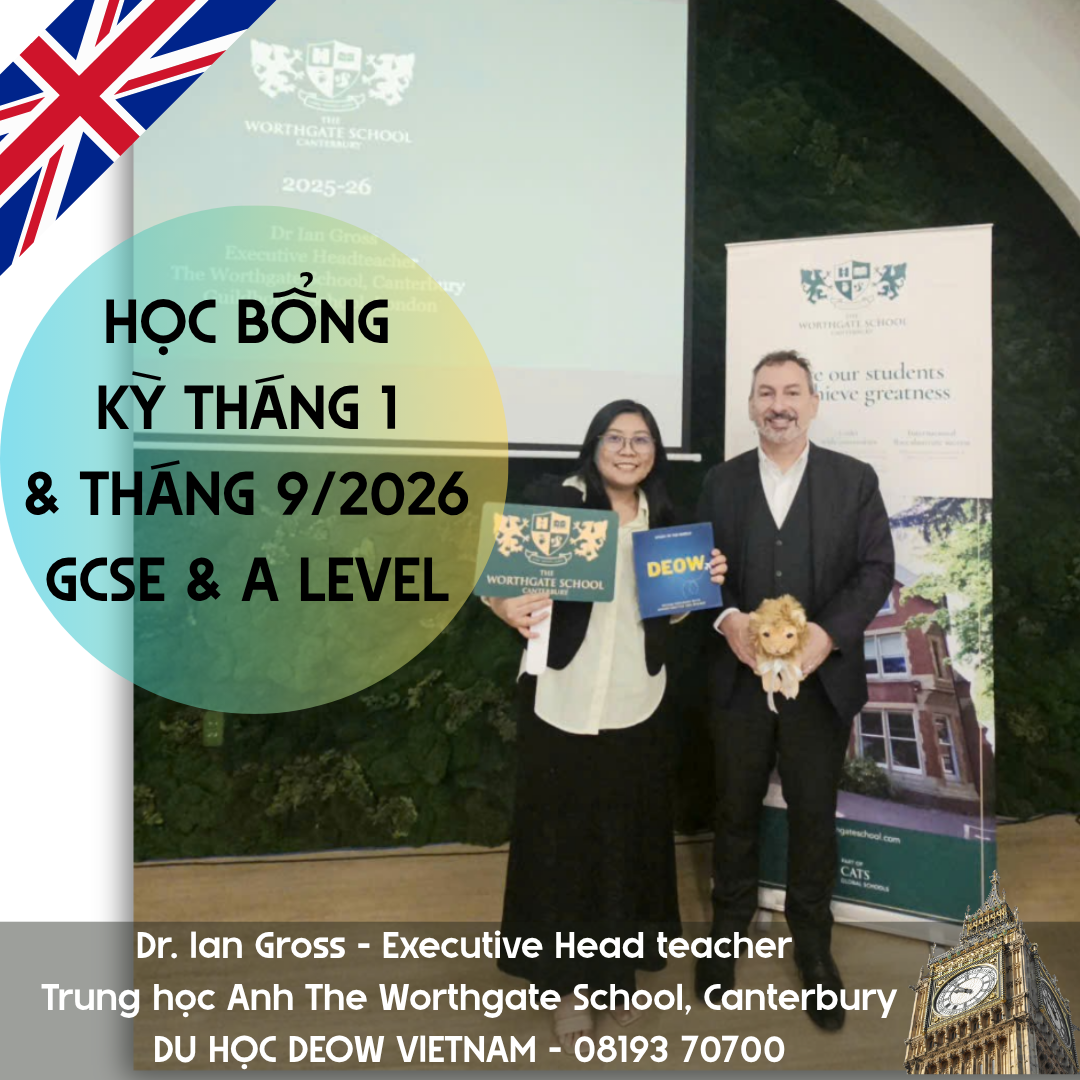 Học bổng 140% Worthgate School (100% học phí và 40% Ăn ở)