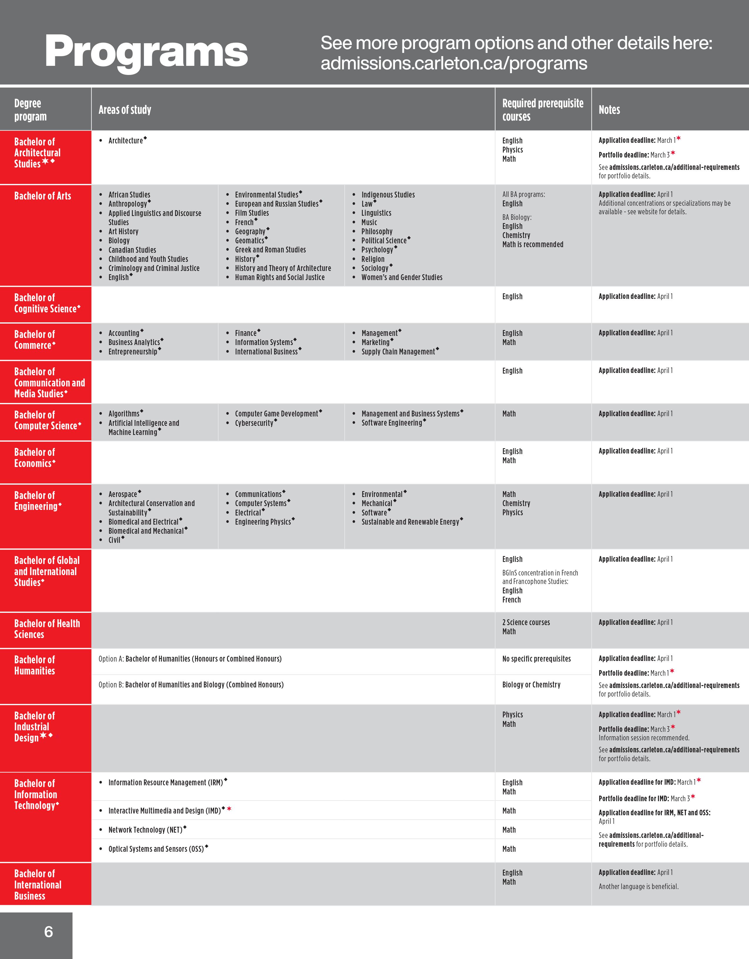 Đây là số tiền bạn có thể phải trả trong một năm tại Đại học Carleton, cũng như chi phí học phí theo chương trình. Đúng! Sinh viên quốc tế đủ điều kiện nhận học bổng đầu vào tự động của Đại học Carleton và cũng có thể đăng ký Học bổng Uy tín – giải thưởng cao nhất của chúng tôi.