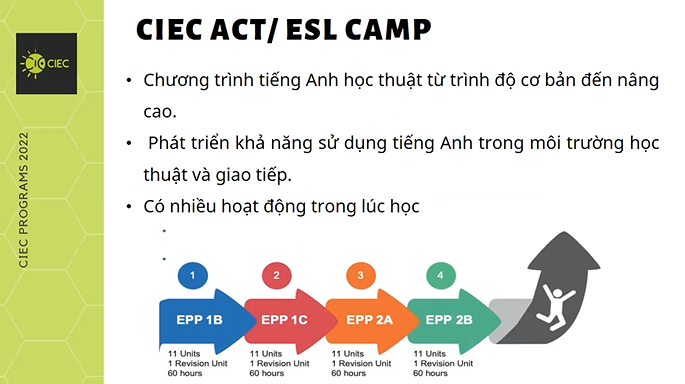 ✴️ Chương trình Trại hè tiếng Anh ESL/ACT dành cho học viên từ trình độ căn bản đến nâng cao, tuy nhiên tiếng Anh học thuật nhiều hơn chứ không chỉ đơn thuần là tiếng Anh giao tiếp.