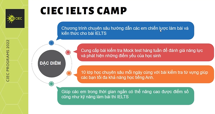 Tham gia trại hè IELTS, các bạn sẽ được dạy các chiến lược làm bài và bổ sung kiến thức cần thiết để chuẩn bị cho bài thi IELTS bằng việc làm các bài thi thử hàng tuần, đánh giá sự tiến bộ.