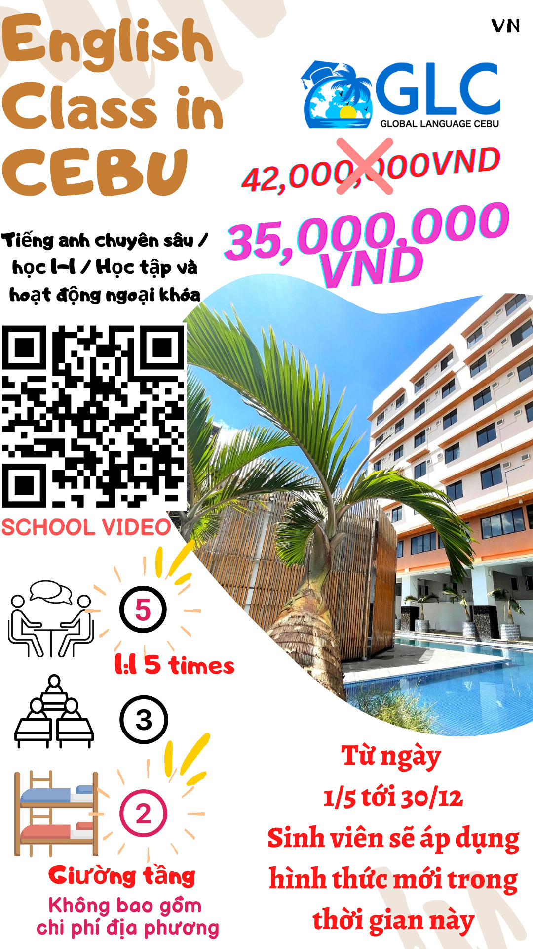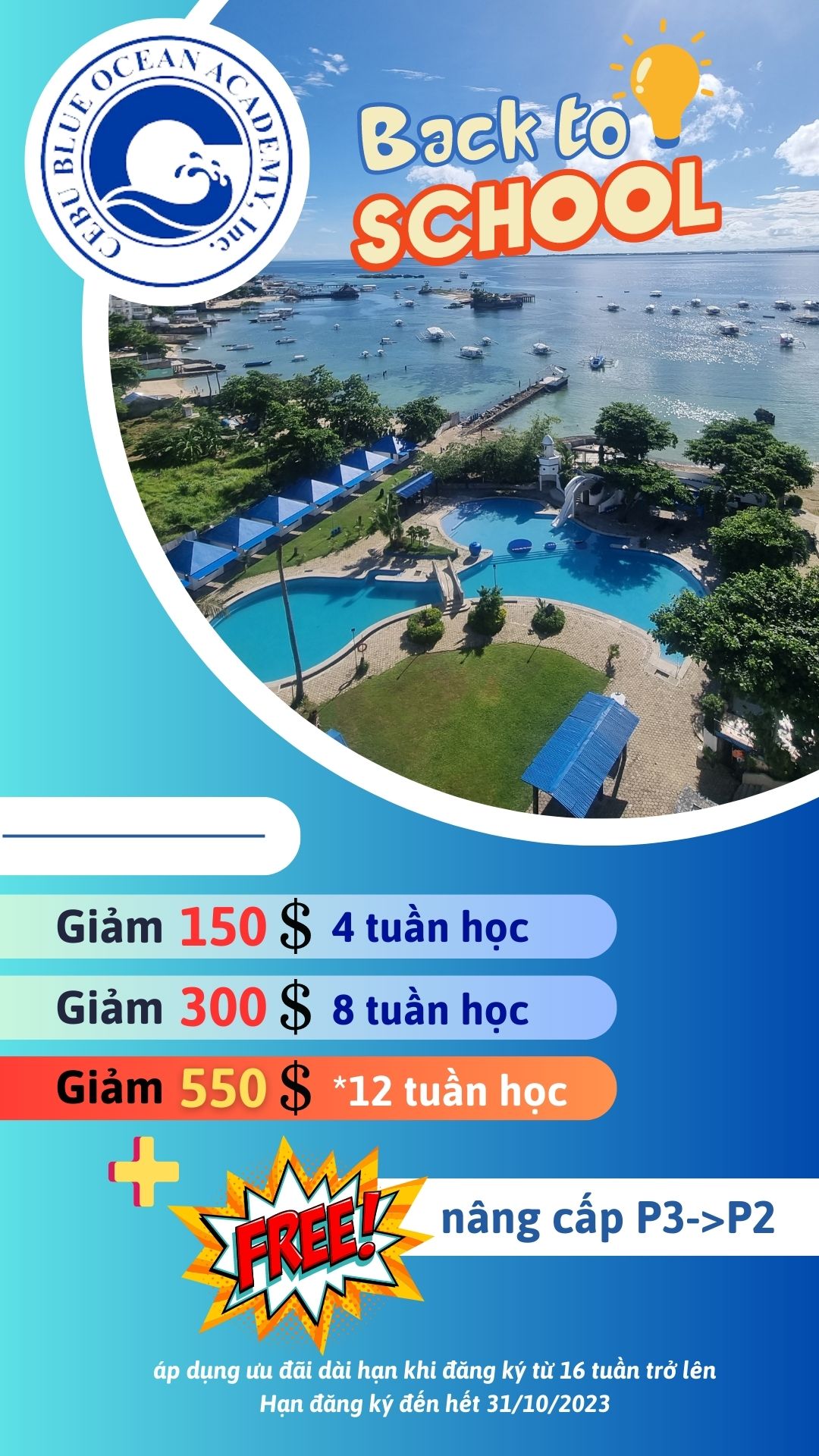 Ưu đãi đến 15% học phí và ăn ở (loại phòng 1, 2, 3, 4 rộng rãi nhất các trường ở Cebu)
