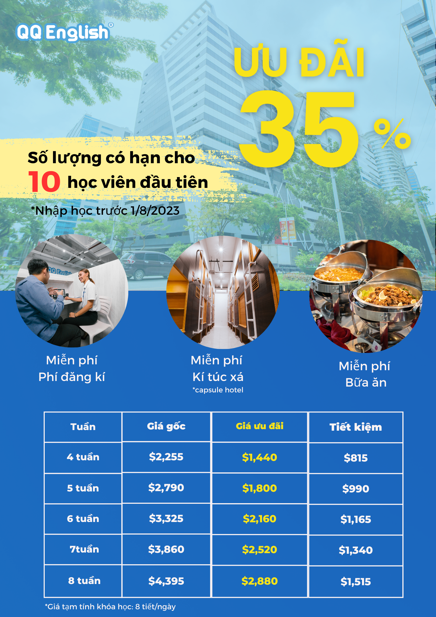 Học phí & phí ăn ở sẽ tăng ưu đãi 50$ cho mỗi 4 tuần.