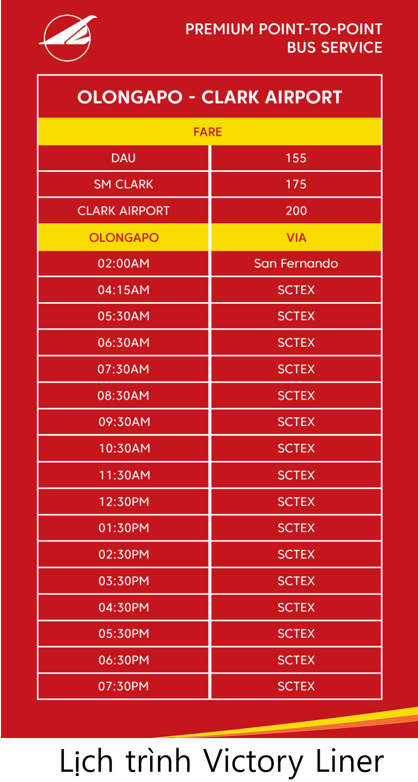 Gần cửa ra vào bắt Tuyến xe buýt P2P đi SUBIC (OLONGAPO). Nếu thấy xe buýt có dòng chữ OLONGAPO thì hãy bước lên nhé và giá vé của Victory Liner là 200peso