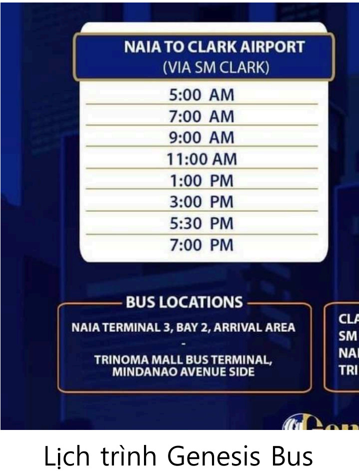 Bước 2: Đón chuyến xe buýt GENESIS BUS đi thẳng tới sân bay Clark (2 giờ)
