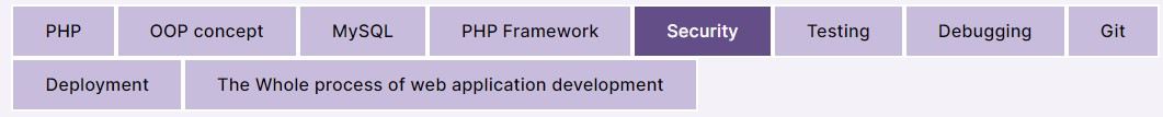 | Security in PHP | Security is an important aspect of web development, and in this course, you will learn how to implement security measures such as input validation, password hashing, SQL injection prevention, and XSS (Cross-Site Scripting) prevention in PHP. |