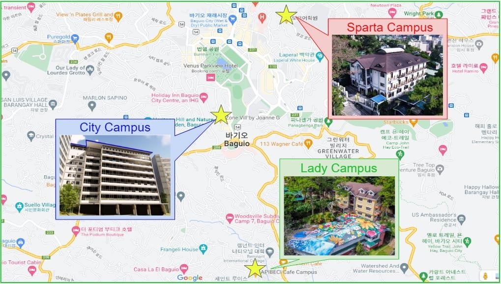 Tháng 10, 2022, Premium City Campus, tọa lạc ở trung tâm thành phố Baguio, gần Burnham Park, sẽ đi vào hoạt động. Đây là campus tuyệt vời dành cho những học viên là người đi làm, freelancers, hay những doanh nhân đang bắt đầu xây dựng doanh nghiệp và tìm kiếm cộng sự cùng học tiếng anh và cùng nhau trao đổi những ý tưởng và dự án kinh doanh mới.