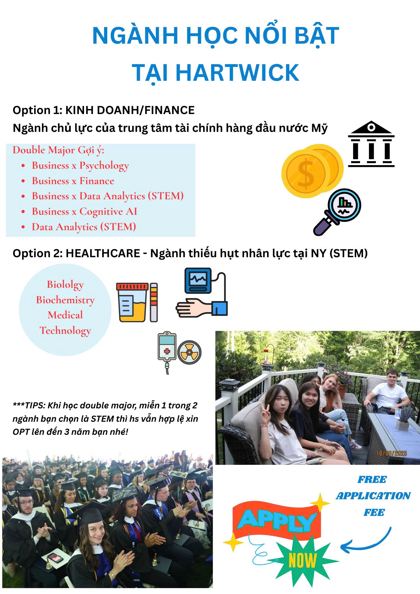 - Lựa chọn Double Major- x2 cơ hội nghề nghiệp cho hs với học phí & thời gian học không đổi, chi tiết tại: https://www.hartwick.edu/academics/majors-and-minors/
