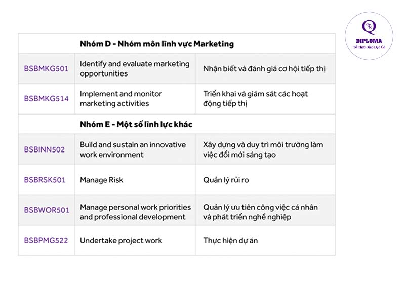 IELTS 5.5 (không band nào dưới 5.0) hoặc tương đương, và hoàn thành bài kiểm tra năng lực đầu vào của Diploma of Business.