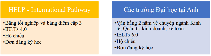 Bằng việc học tập chuyên sâu các môn chuyên ngành tại HELP – International Pathway, Philippines cũng như bổ trợ năng lực tiếng Anh liên tục xuyên suốt quá trình học tập, học viên sẽ được trang bị đủ năng lực về chuyên môn và ngôn ngữ để có thể học tập ngay khi thực hiện chuyển tiếp tới các trường Đại học tại Anh (Coventry University, Northumbria University, University College Birmingham, University of Sunderland)