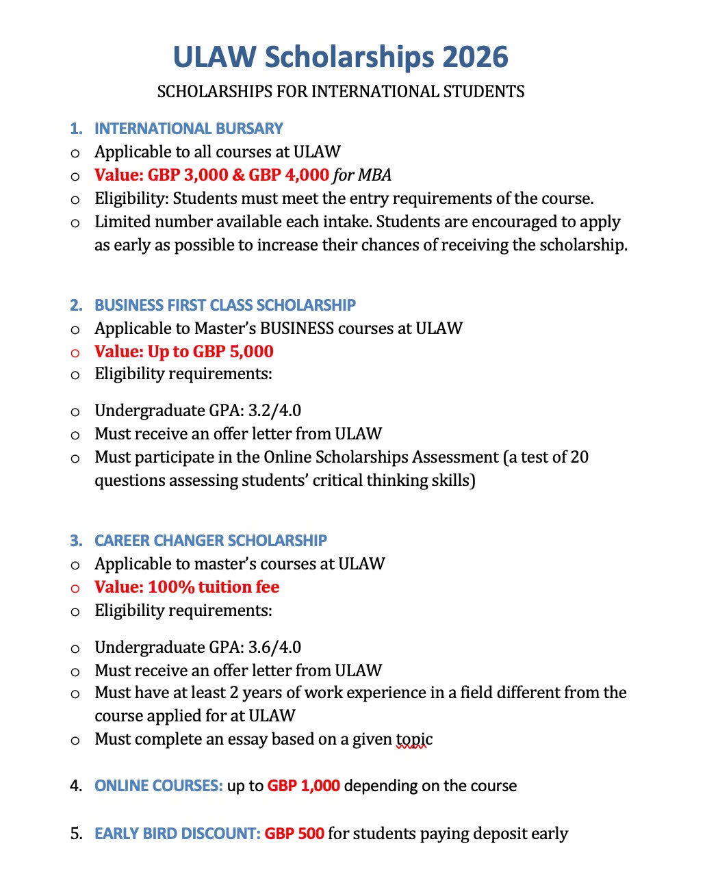 - Học bổng tới £5,000 – Deadline: 10/07/2025
