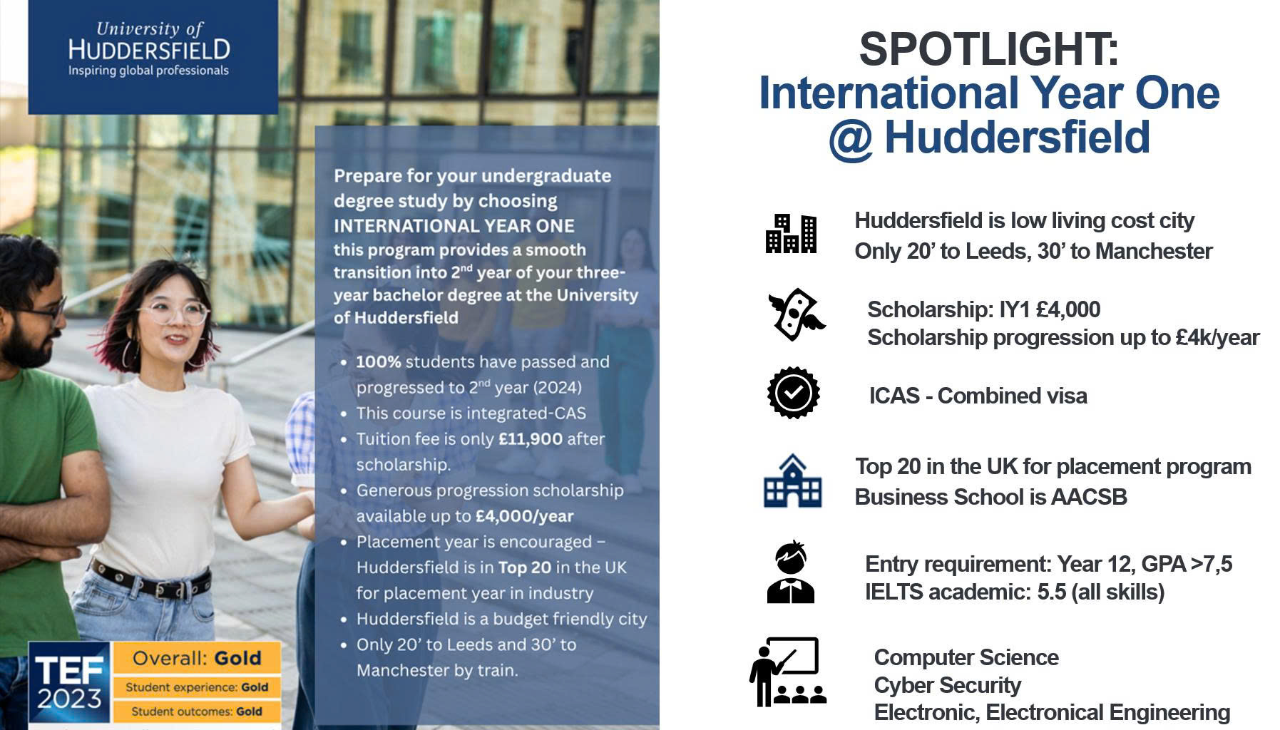 * Năm Nhất Đại học - Chuyển tiếp vào Năm 2 và Năm 3 Đại học Huddersfield (Chương trình tổng cộng 3 năm)