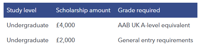 Đối với sinh viên quốc tế bậc đại học, họ có thể được nhận tới 4.000 bảng Anh cho mỗi năm học (không bao gồm năm thực tập), dựa trên thành tích học tập.
