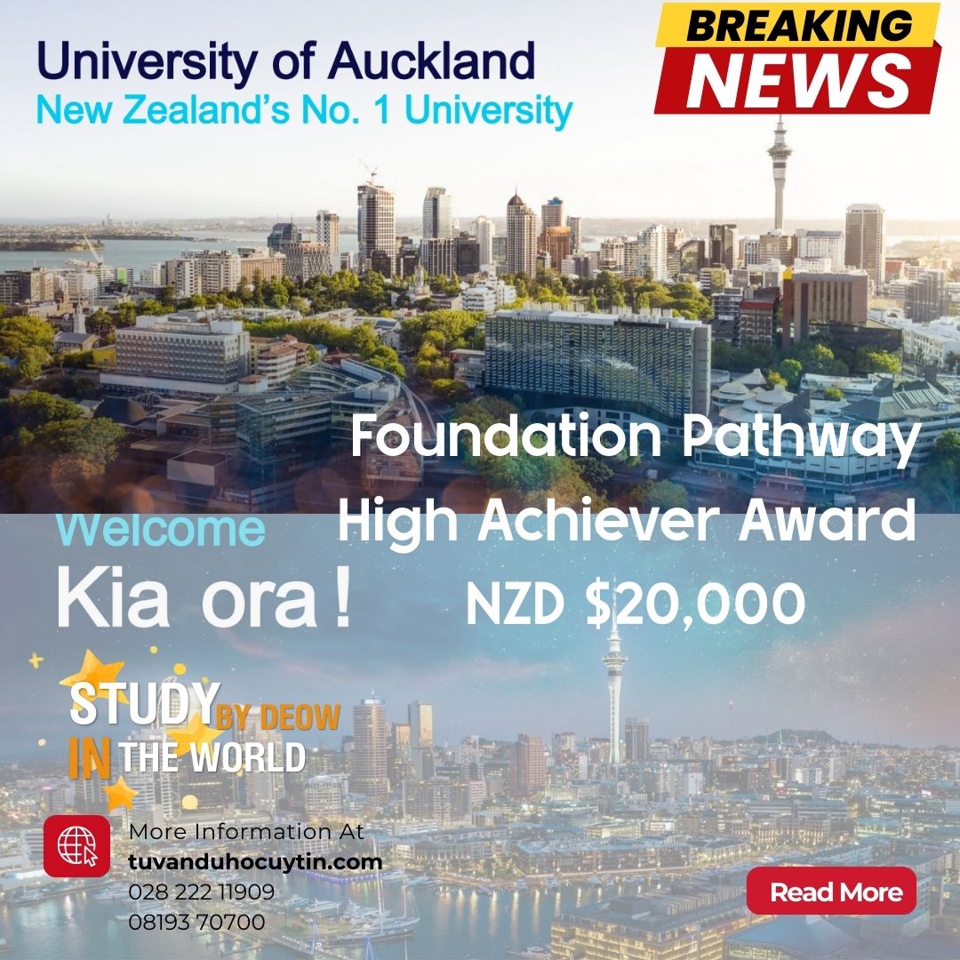 2. Học bổng Foundation Pathway High Achiever Award, trị giá: NZD $20,000