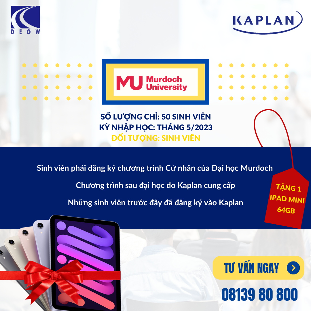Tặng 1 Ipad Mini 64GB khi nộp hồ sơ nhập học Chương trình cử nhân/ Sau Đại Học/ MBA của Đại Học Murdoch- Cho kỳ tháng 5/2022