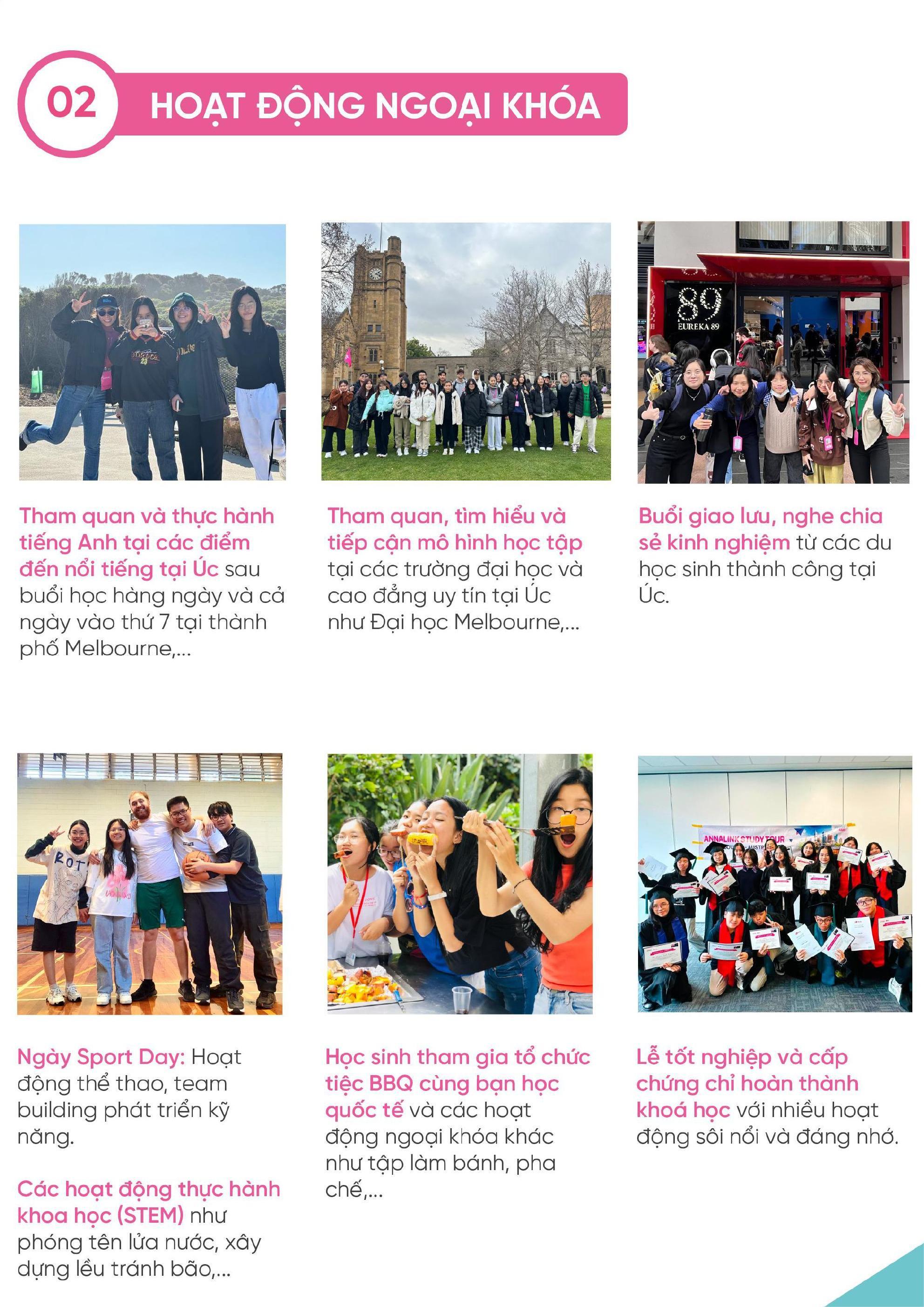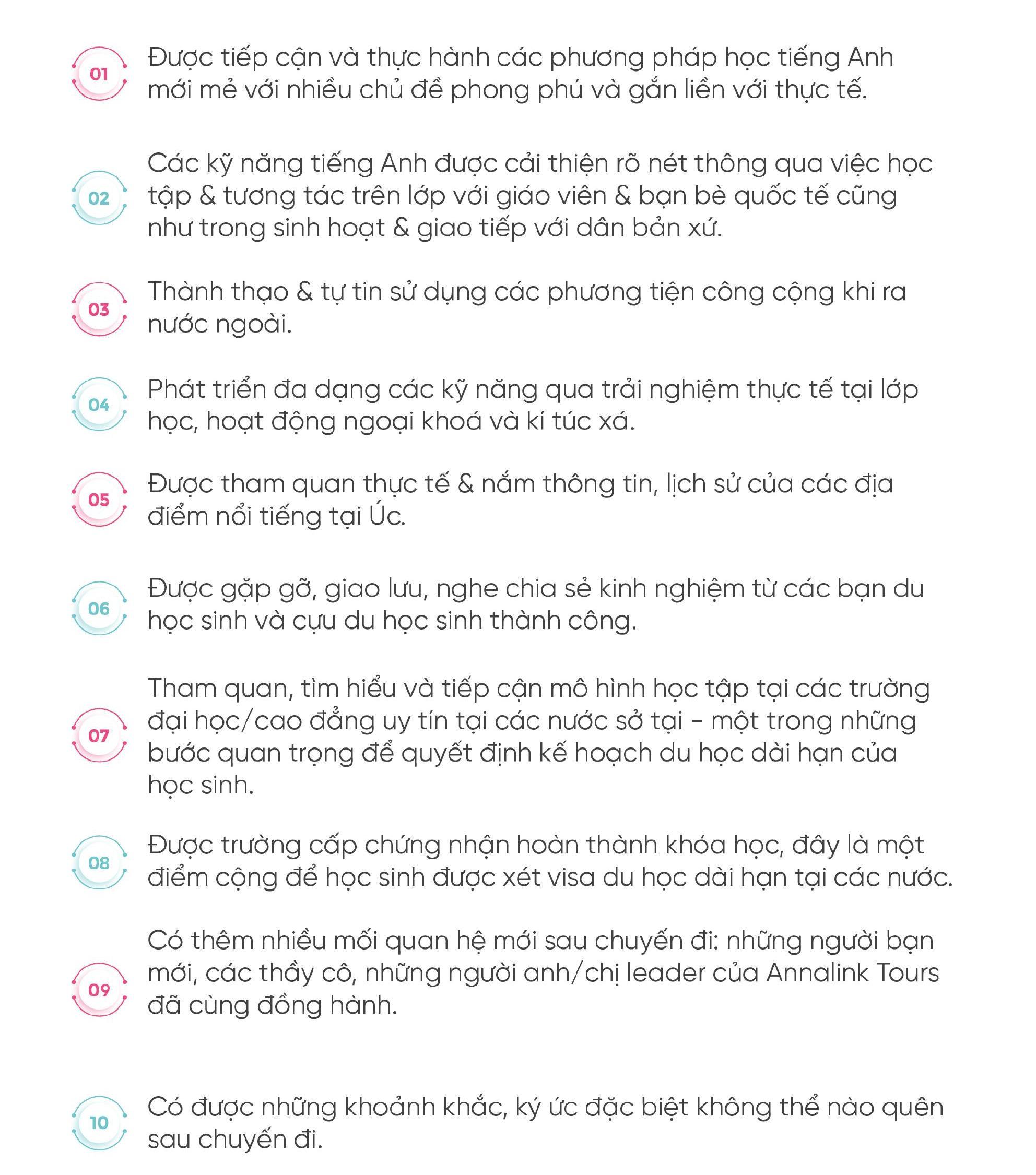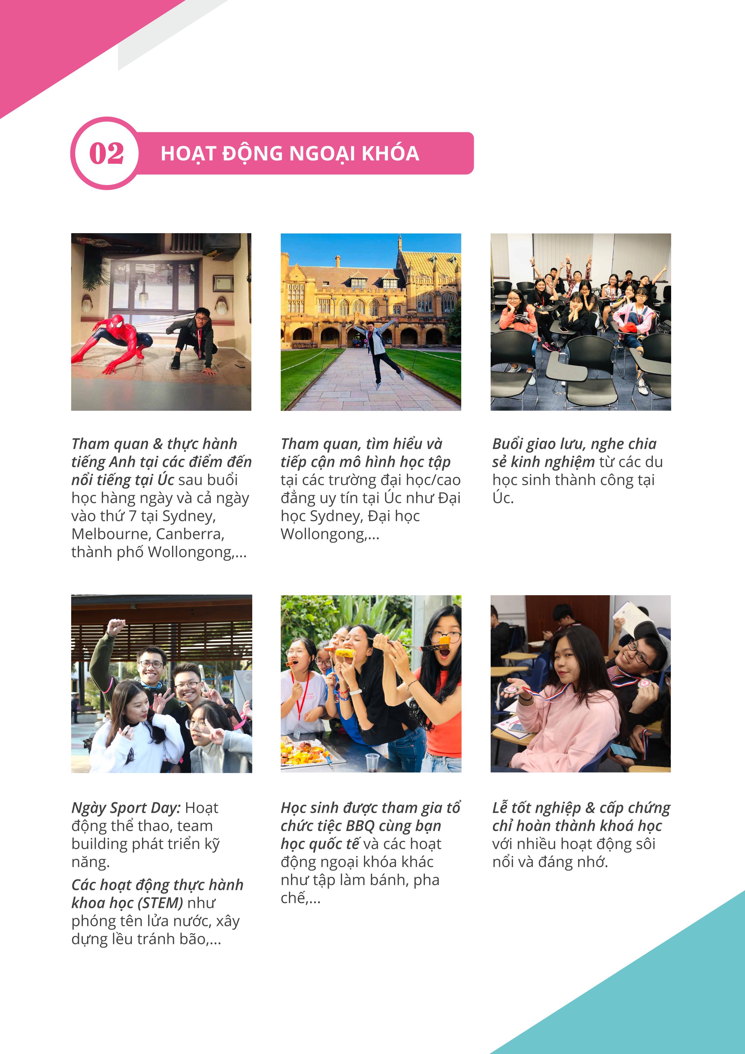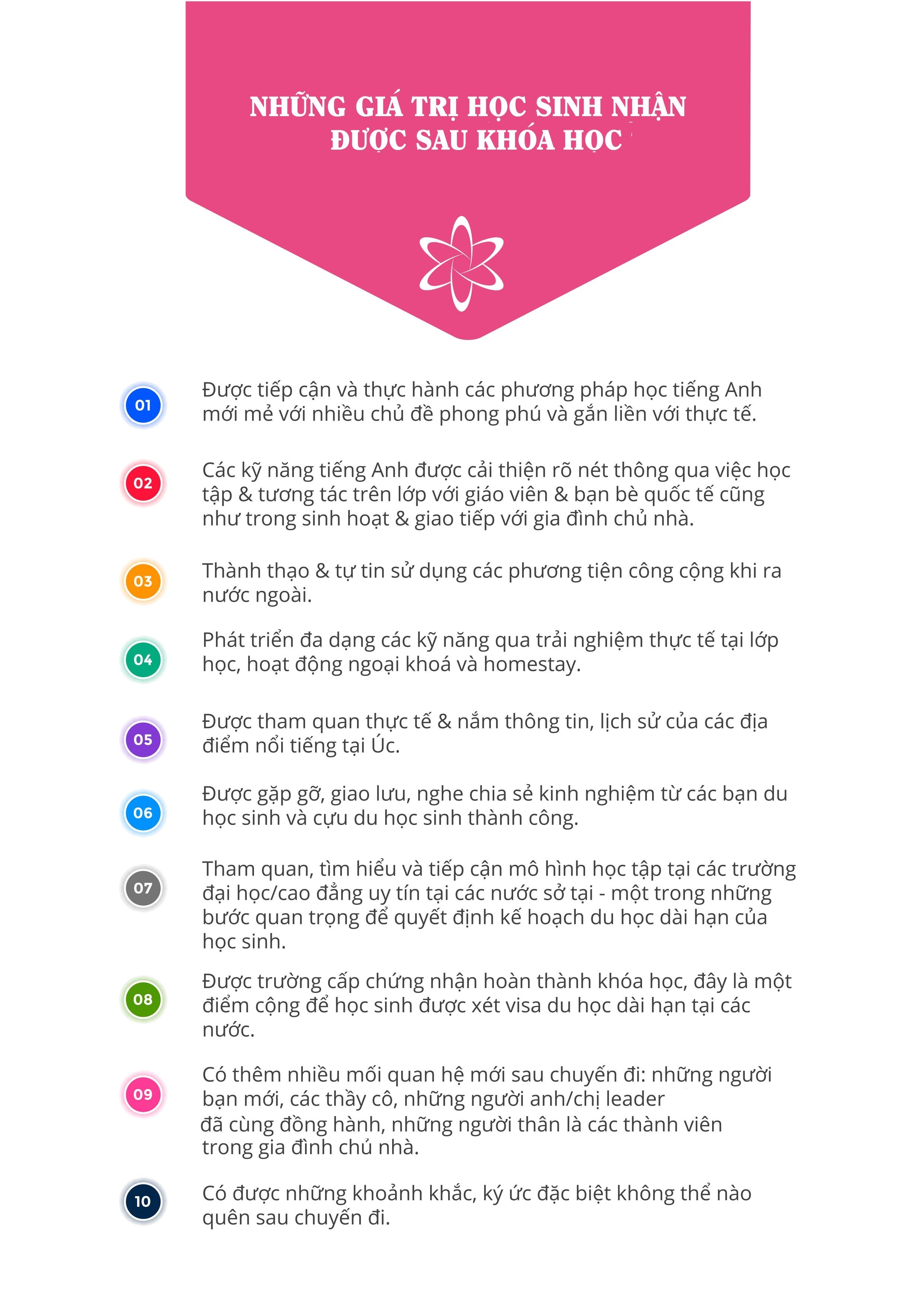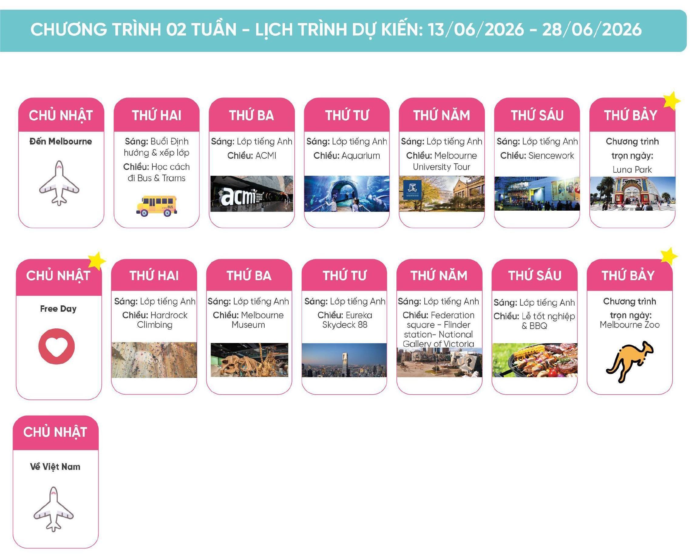 Học sinh tham gia Summer Tour 2023 được học tập và trải nghiệm tại MELBOURNE / SYDNEY - AUSTRALIA theo các chương trình sau: