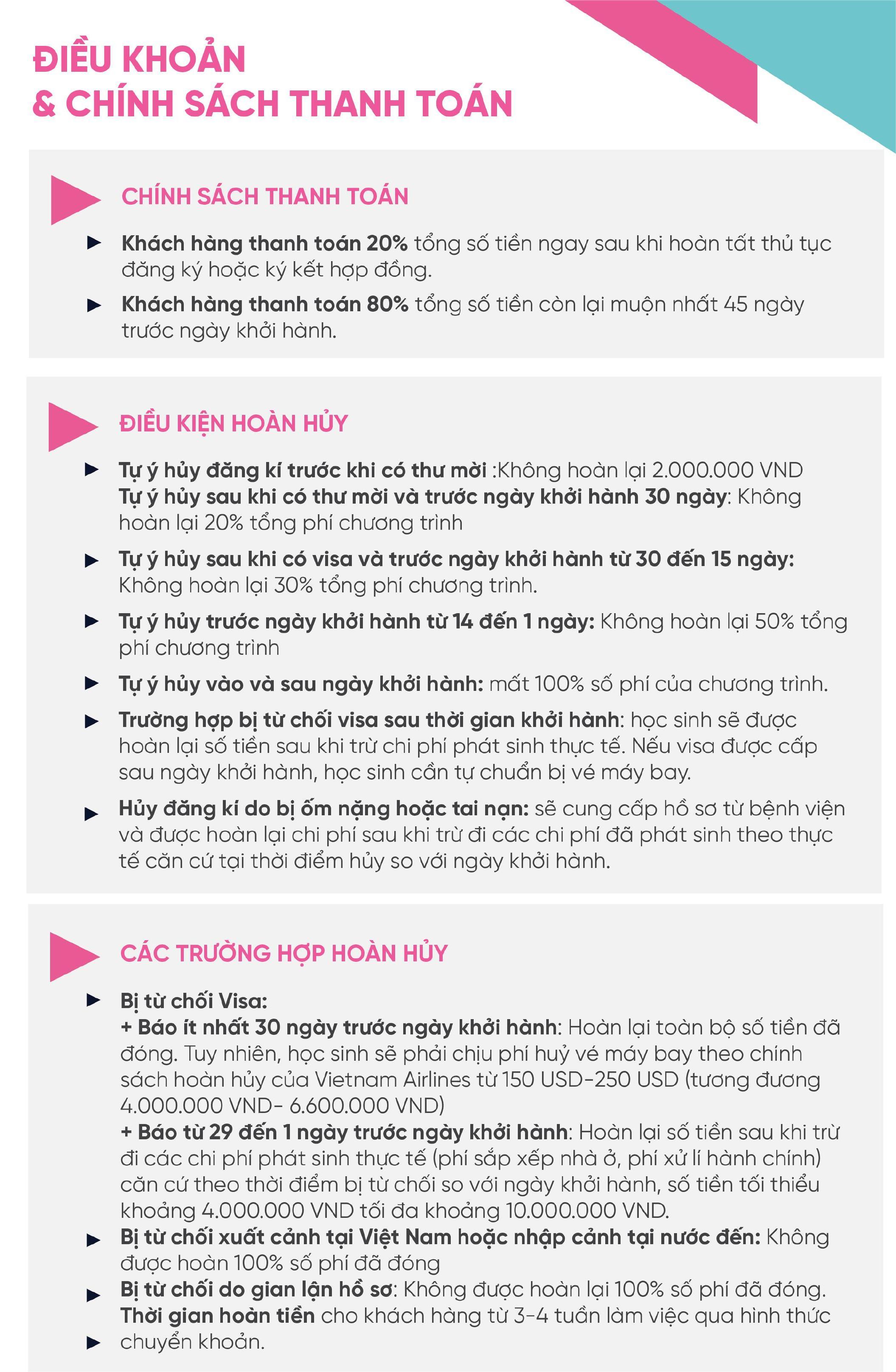 ✔️ Học sinh CAM KẾT đi theo đúng lịch trình theo sự sắp xếp của bên tổ chức dịch vụ. Bất cứ hình thức bỏ hoặc không sử dụng dịch vụ đều KHÔNG được hoàn lại chi phí.