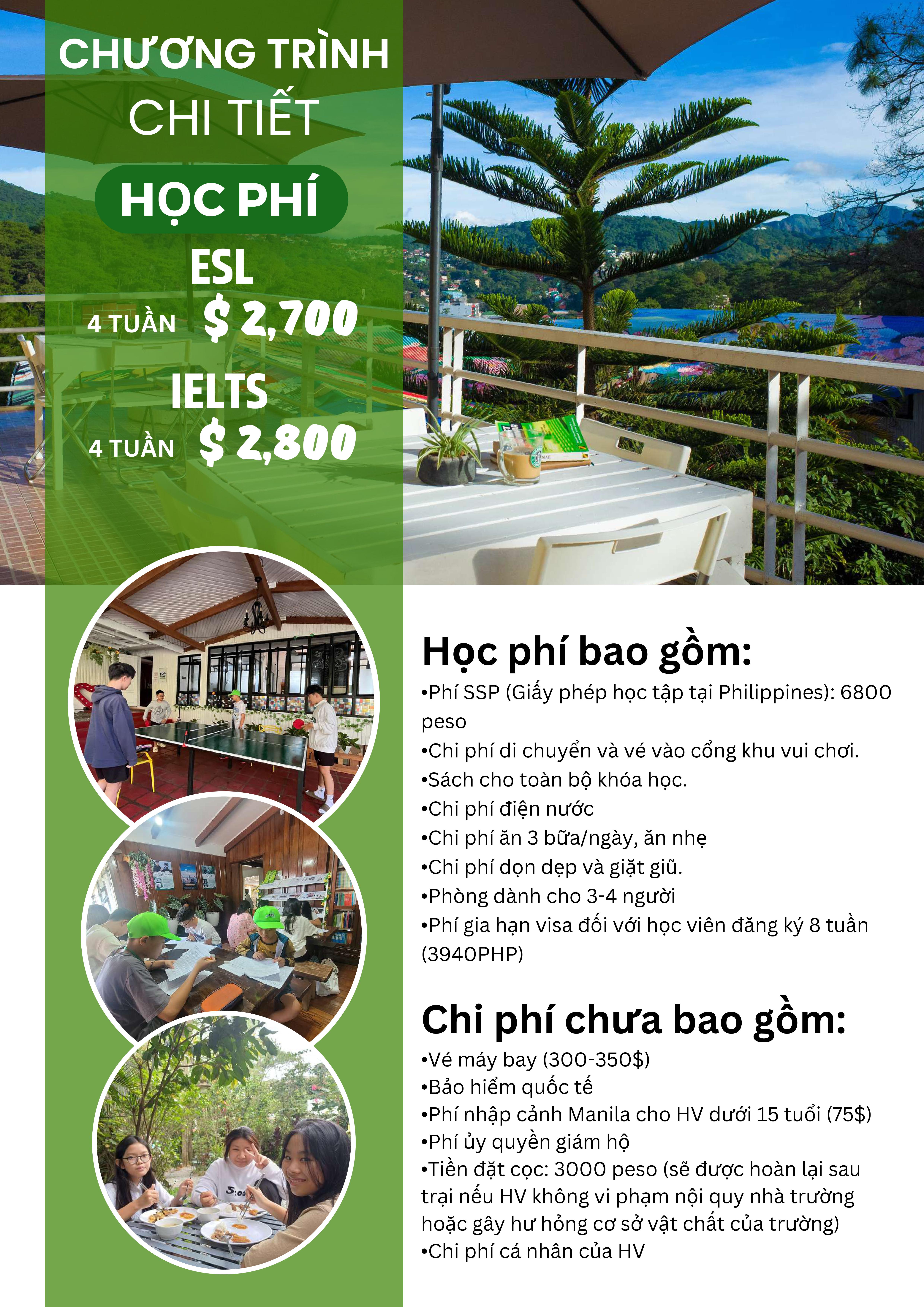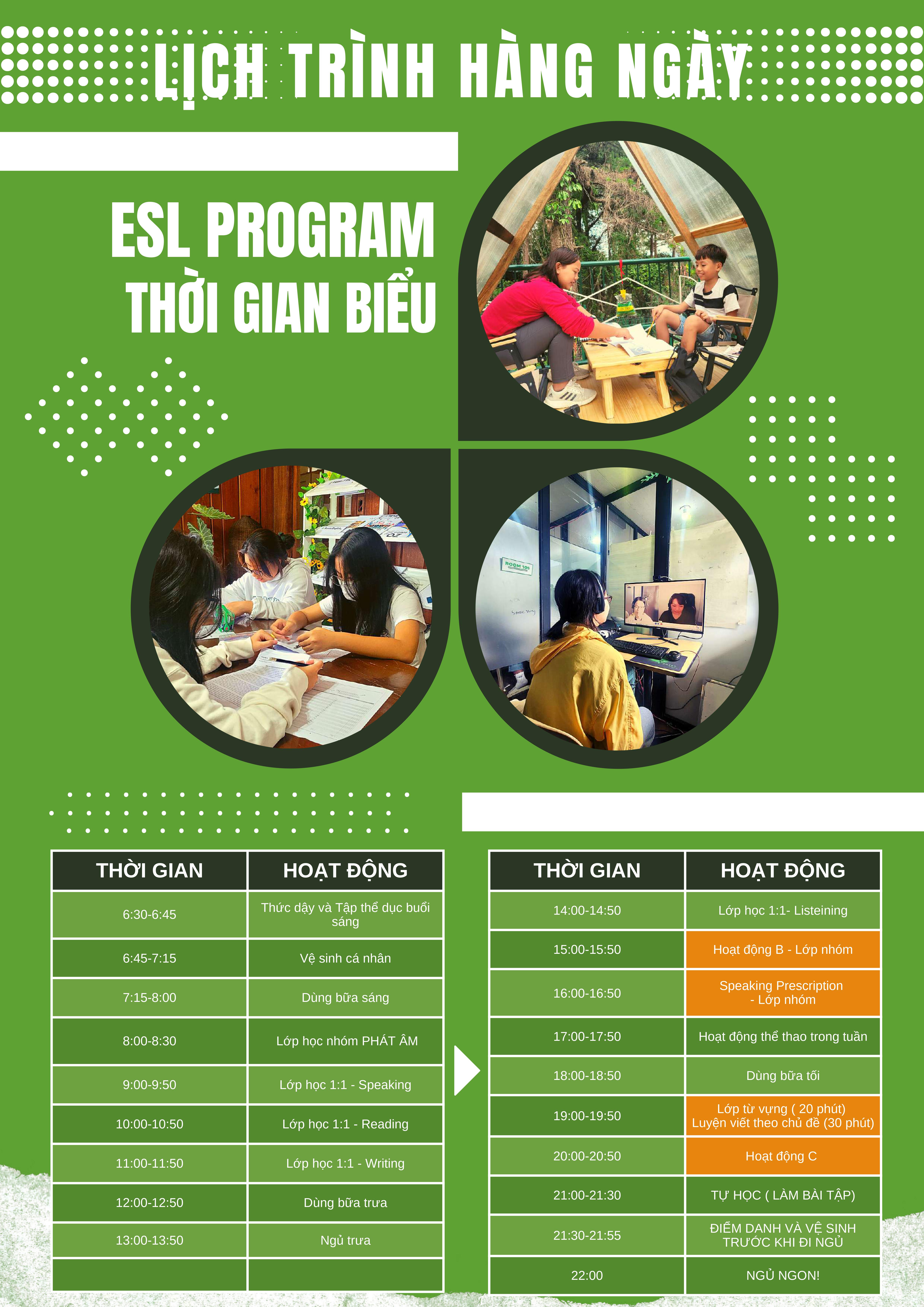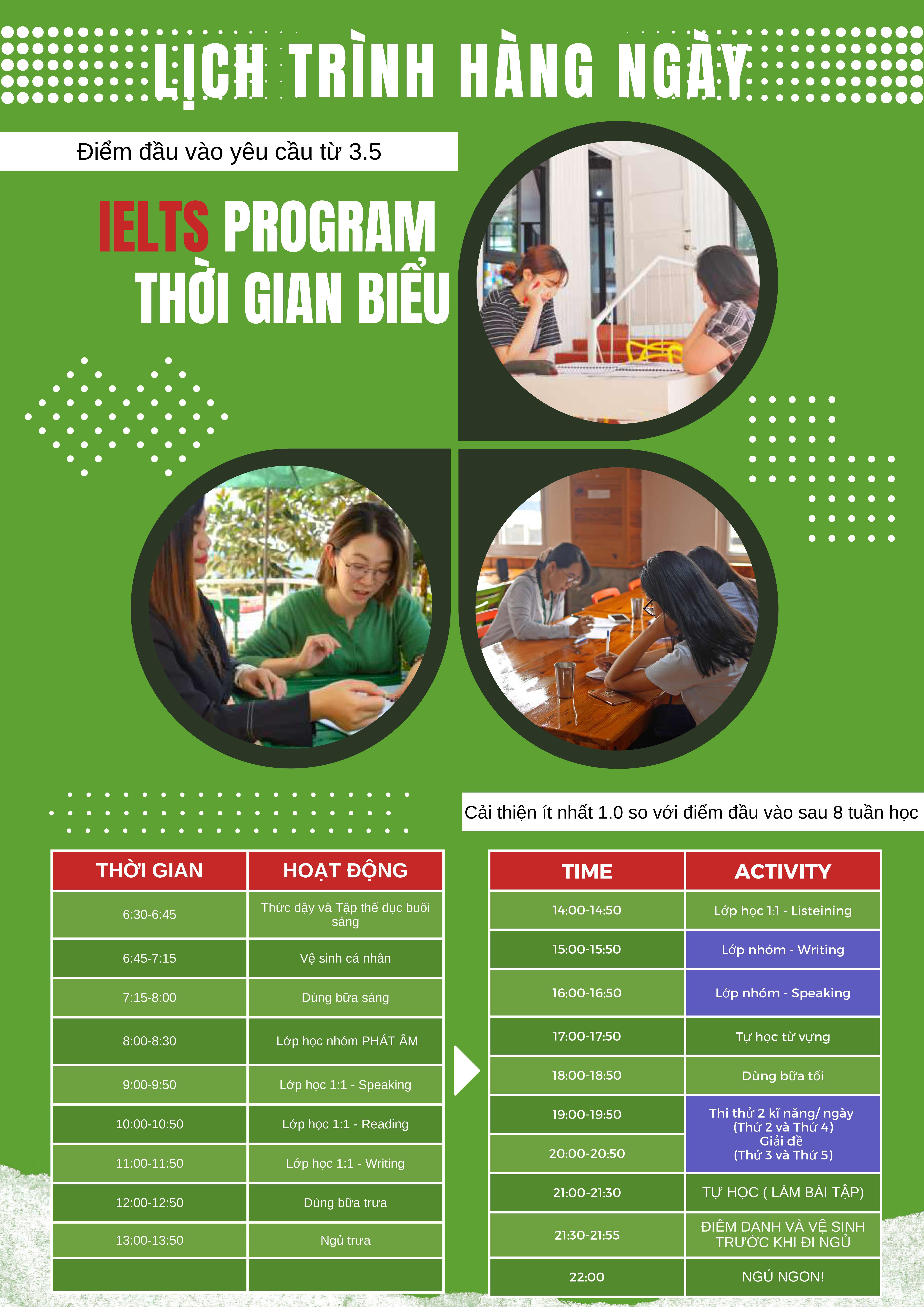 Lịch trình mỗi ngày (Khóa ESL & IELTS)