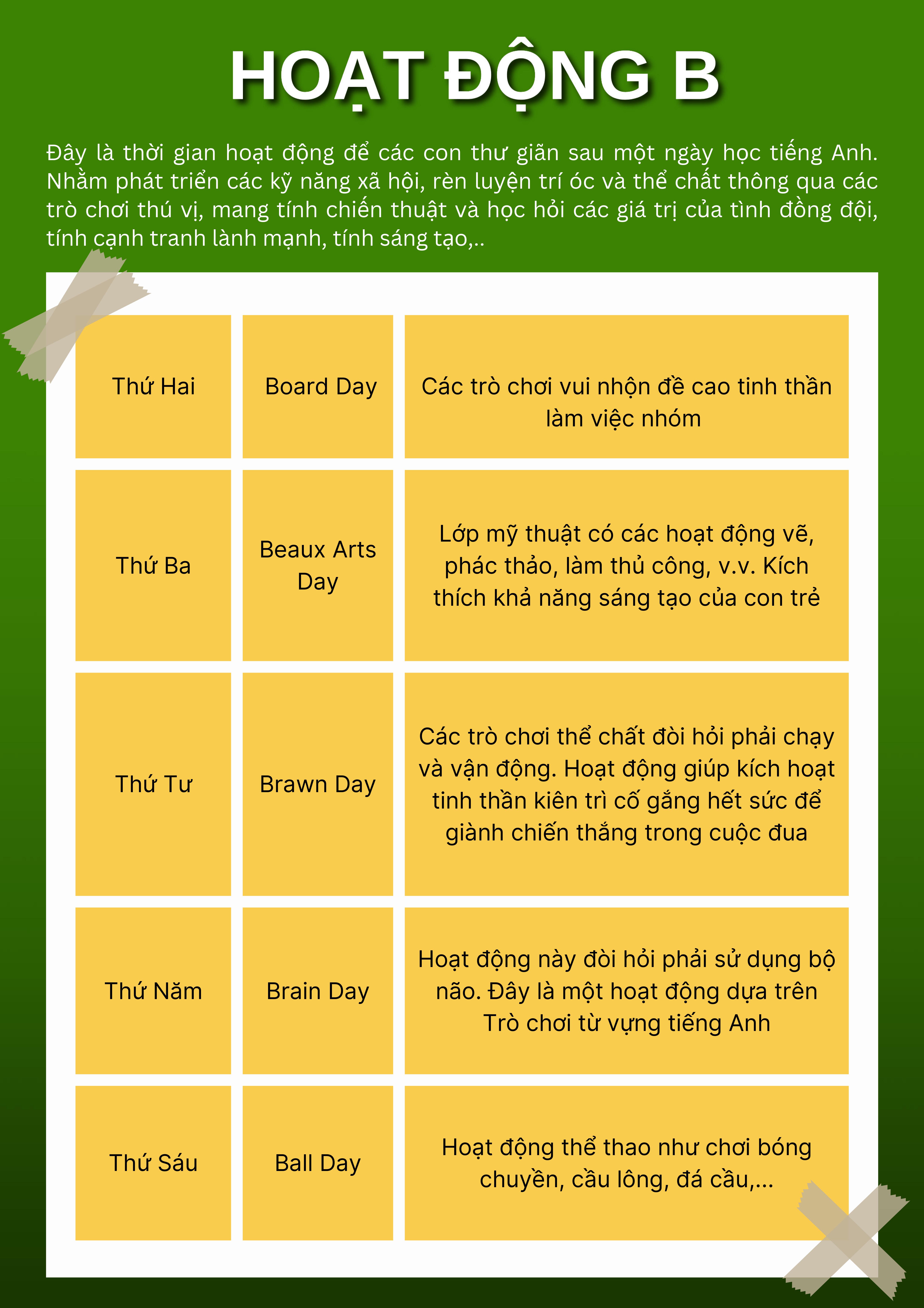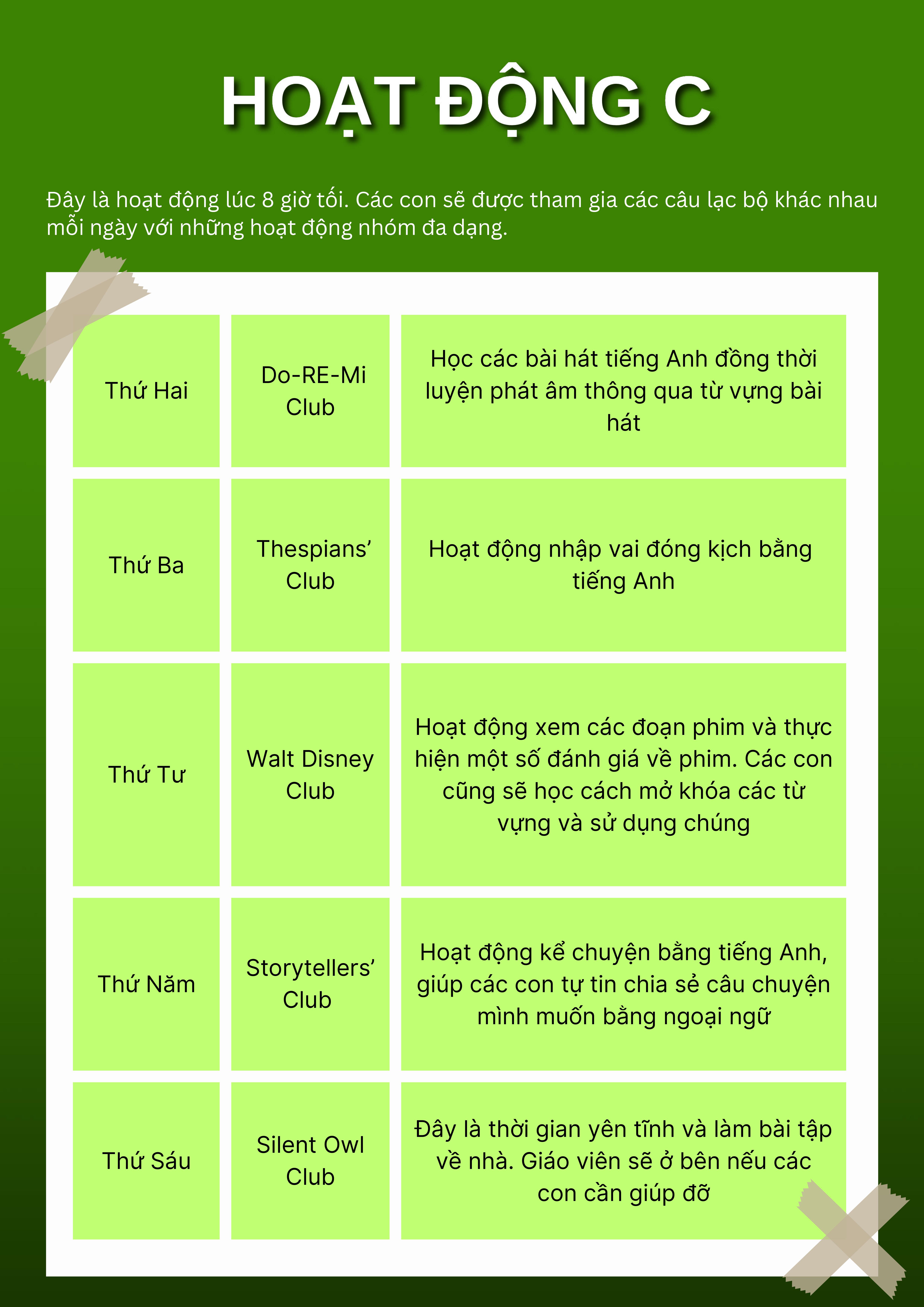 - 2 lớp hoạt động tương tác bằng tiếng Anh (Hoạt động B&C)