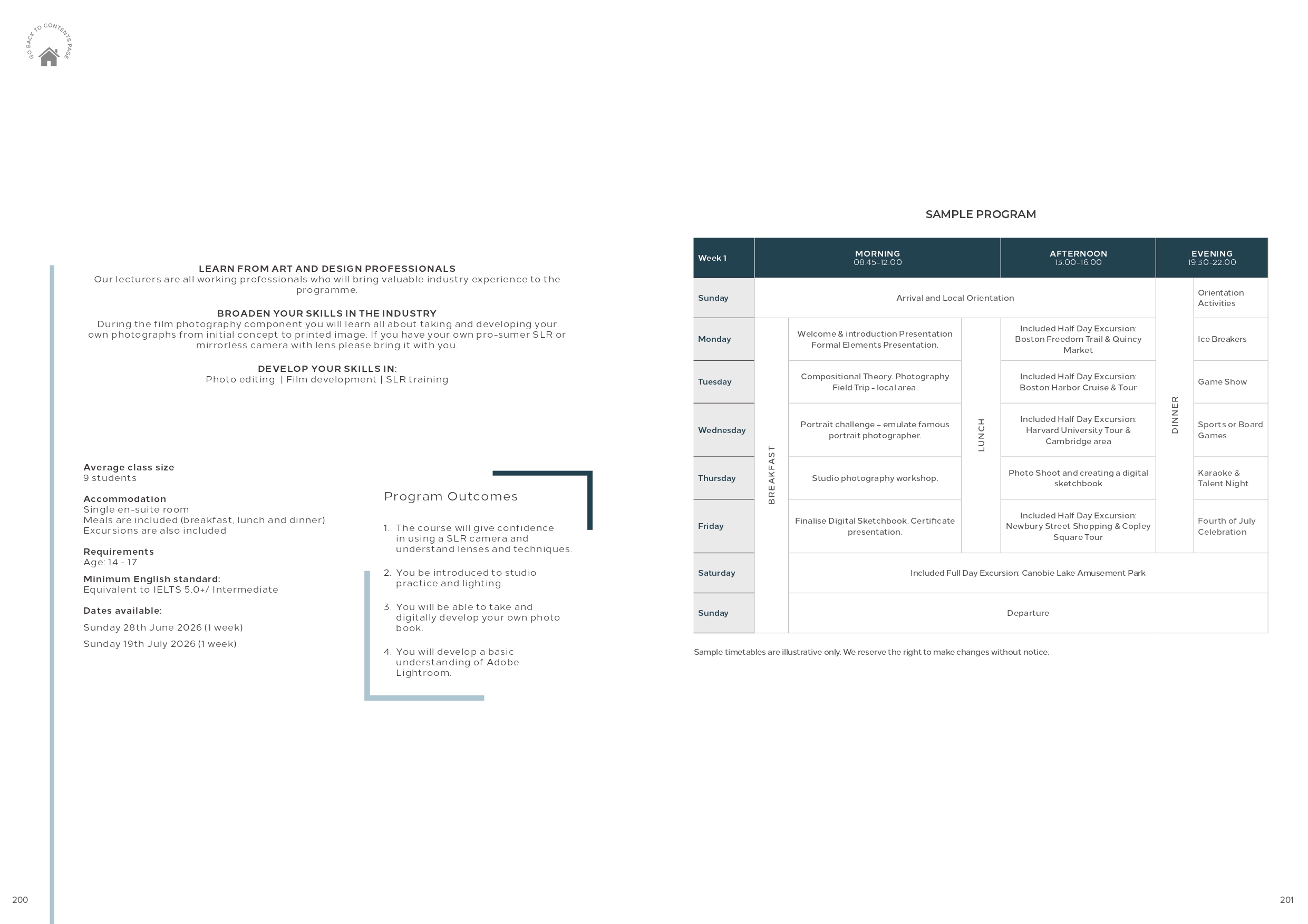 ? Học sinh có thể đăng ký 1, 2 ,3, 4 tuần và sẽ chủ động việc đi Mỹ và về Việt Nam. Nếu đi theo đoàn có group leader (highlight màu vàng) thì học sinh sẽ đăng ký 2 tuần từ 10/7 đến 24/7 đi về 2 chiều từ TP.HCM – Boston.
