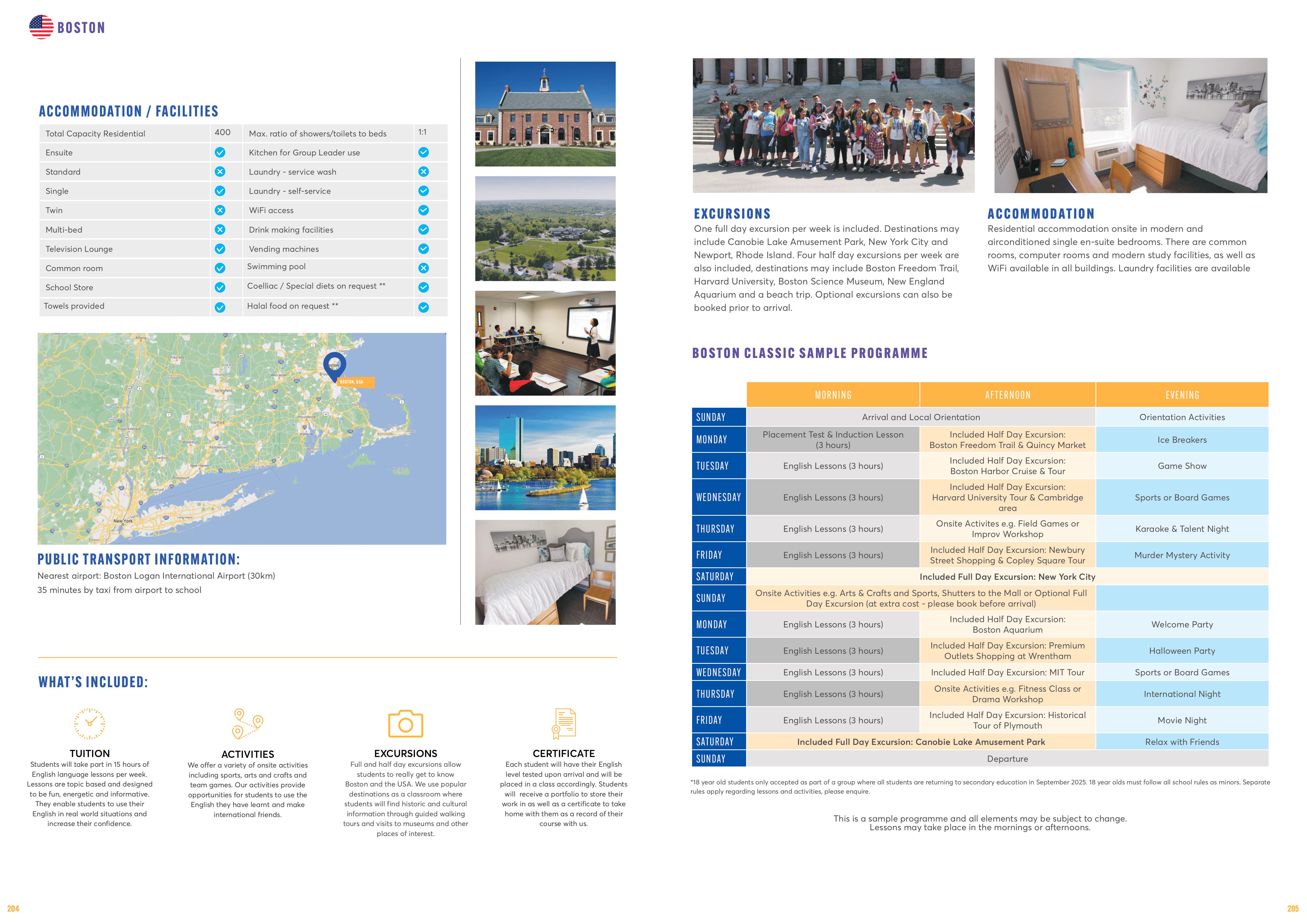 - Giá trị với chi phí khi được tham quan thành phố New York hoa lệ và thành phố Boston, thủ đô học thuật của nước Mỹ với hơn 100 trường Đại học.