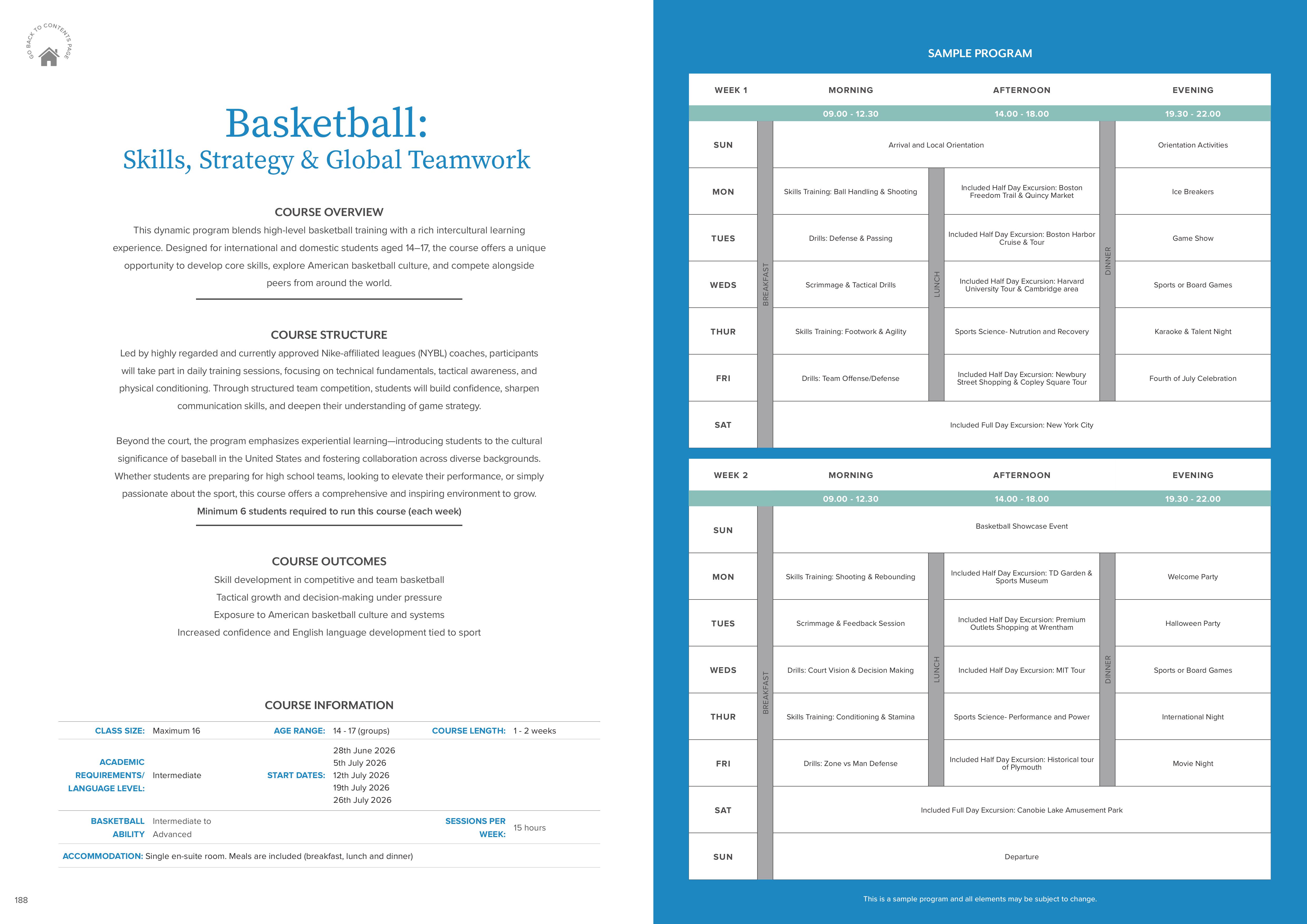 - Thời gian trại hè Mỹ: 2 tuần từ 28/6/2026 - 12/07/2026 (tại trường 15 ngày và 2 ngày bay)