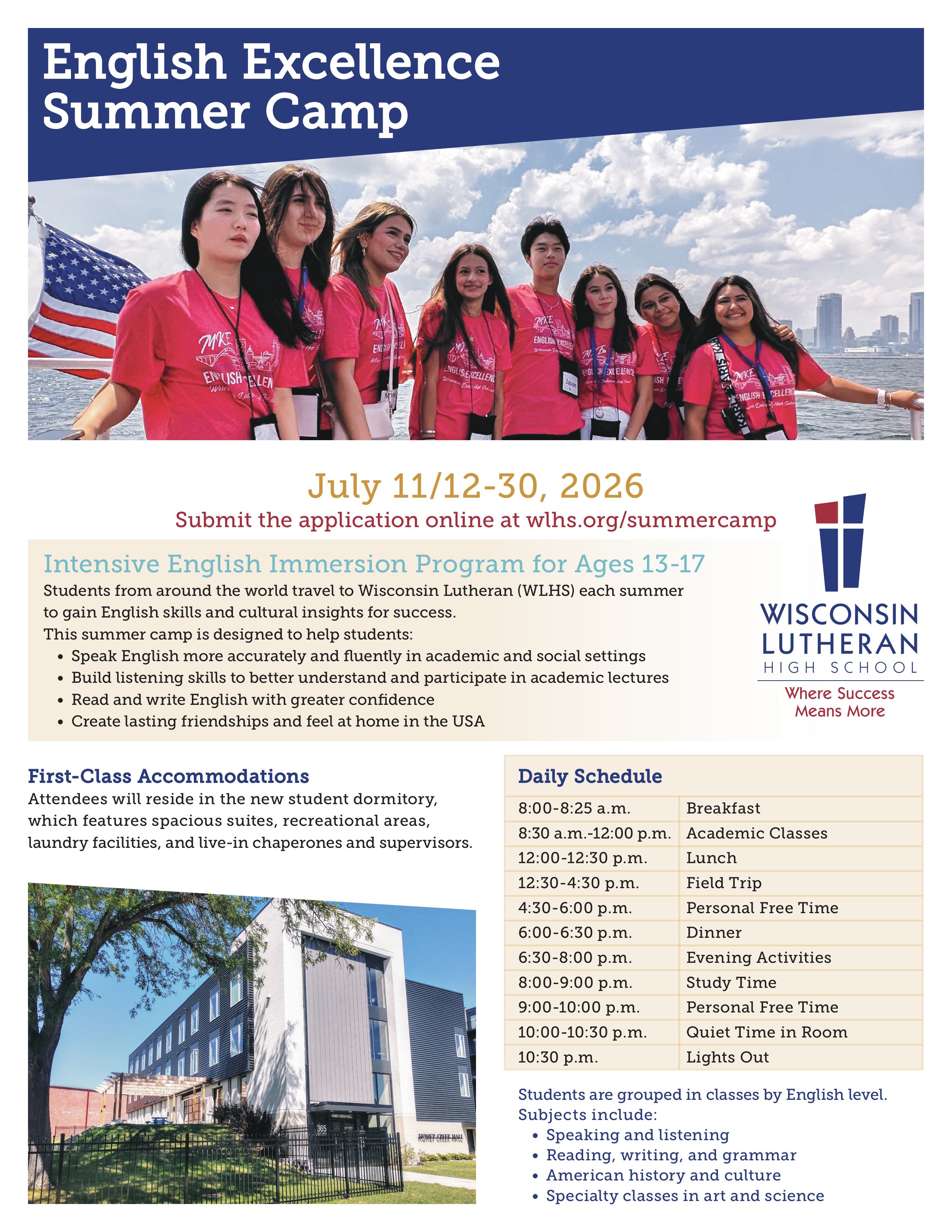 Học sinh từ khắp nơi trên thế giới đến trường Wisconsin Lutheran (WLHS) mỗi mùa hè để trau dồi kỹ năng tiếng Anh và hiểu biết văn hóa nhằm đạt được thành công.