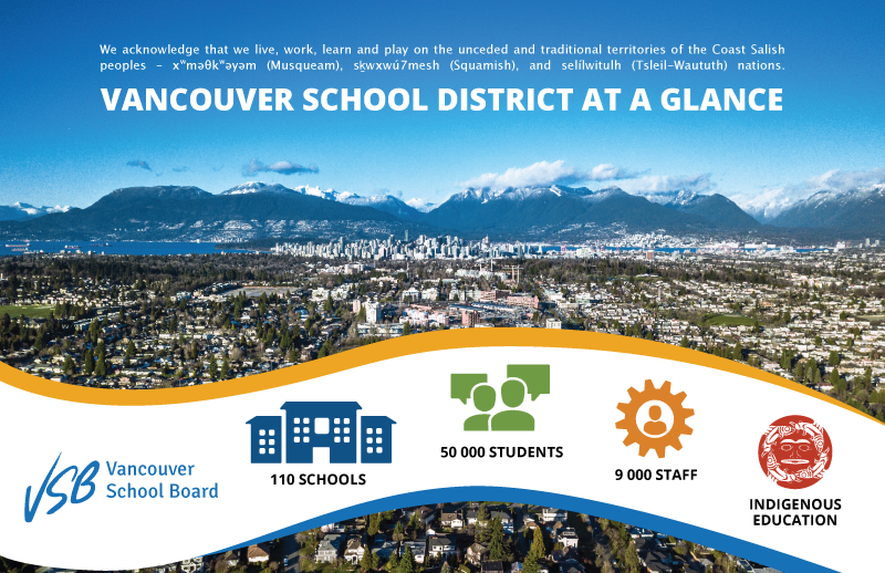 Vancouver School Board (VSB) là một học khu lớn, nhộn nhịp và đa văn hóa, cung cấp các chương trình cho 50.000 học sinh từ mẫu giáo đến lớp 12. Hiện trường 18 trường trung học và 89 trường tiểu học, trong đó có 17 trường chấp nhận du học sinh quốc tế. Tất cả các trường công lập trong hệ thống trường ở Vancouver đều đào tạo cả nam lẫn nữ và cung cấp hỗ trợ tuyệt vời cho sinh viên quốc tế. Học sinh sẽ được hỗ trợ tiếng Anh khi cần thiết. Mỗi trường đều có thư viện, phòng tập thể dục, nhà ăn và nhân viên tư vấn để hỗ trợ tất cả học sinh trong việc lập kế hoạch khóa học và các kỹ năng học tập. Có nhiều hoạt động ngoại khóa bao gồm âm nhạc, thể thao, kịch, cờ vua, trượt ván /trượt tuyết và phục vụ cộng đồng.