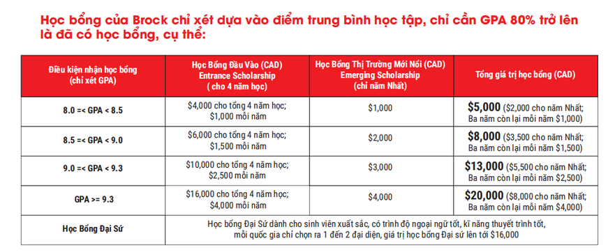 Trường Đại học Brock nằm tại khu vực Niagara nổi tiếng với thác Niagara lớn nhất thế giới, gần với biên giới nước Mỹ và chỉ cách Toronto 1 tiếng lái xe. Brock là một trong những trường đào tạo bậc sau trung học hàng đầu tại Canada với học bổng lên đến 20.000CAD.