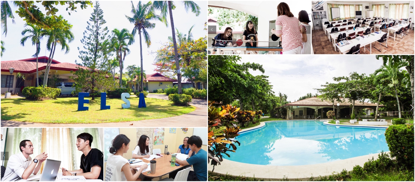 Resort campus: Toạ lạc tại khuôn viên rộng 5 hecta với thiết kế theo phong cách khu nghĩ dưỡng gần gũi với thiên nhiên, ELSA hiện tại là Học viện Anh ngữ lớn nhất Philippines. Ngoài các lớp học nhóm và 1:1, ký túc xá của ELSA còn có đa dạng các tiện tích phục vụ cho nhu cầu sinh hoạt, thể thao và thư giản như hồ bơi, sân bóng rổ, sân cầu lông, hồ bơi, sân chơi cho trẻ,...