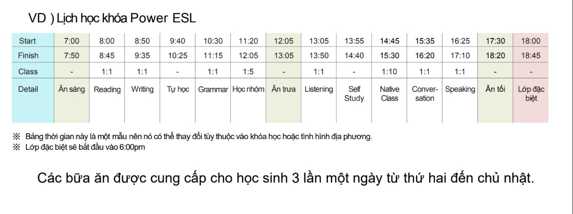- Bắt buộc : Speaking, Hội thoại, Grammar - 2 lớp tự chọn: Reading, Listening, Writing |